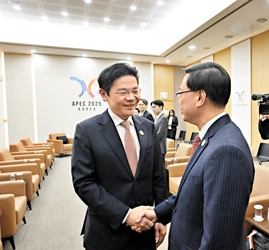 李家超又與新加坡總理黃循財會面。雙方圍繞經貿關係、人文交流、合作機遇等展開坦誠對話。雙方都認同,香港與新加坡作為亞洲金融樞紐,在全球經濟復甦進程中肩負關鍵使命,而香港在推動創科、AI等產業發展方面,與新加坡有很多合作空間。