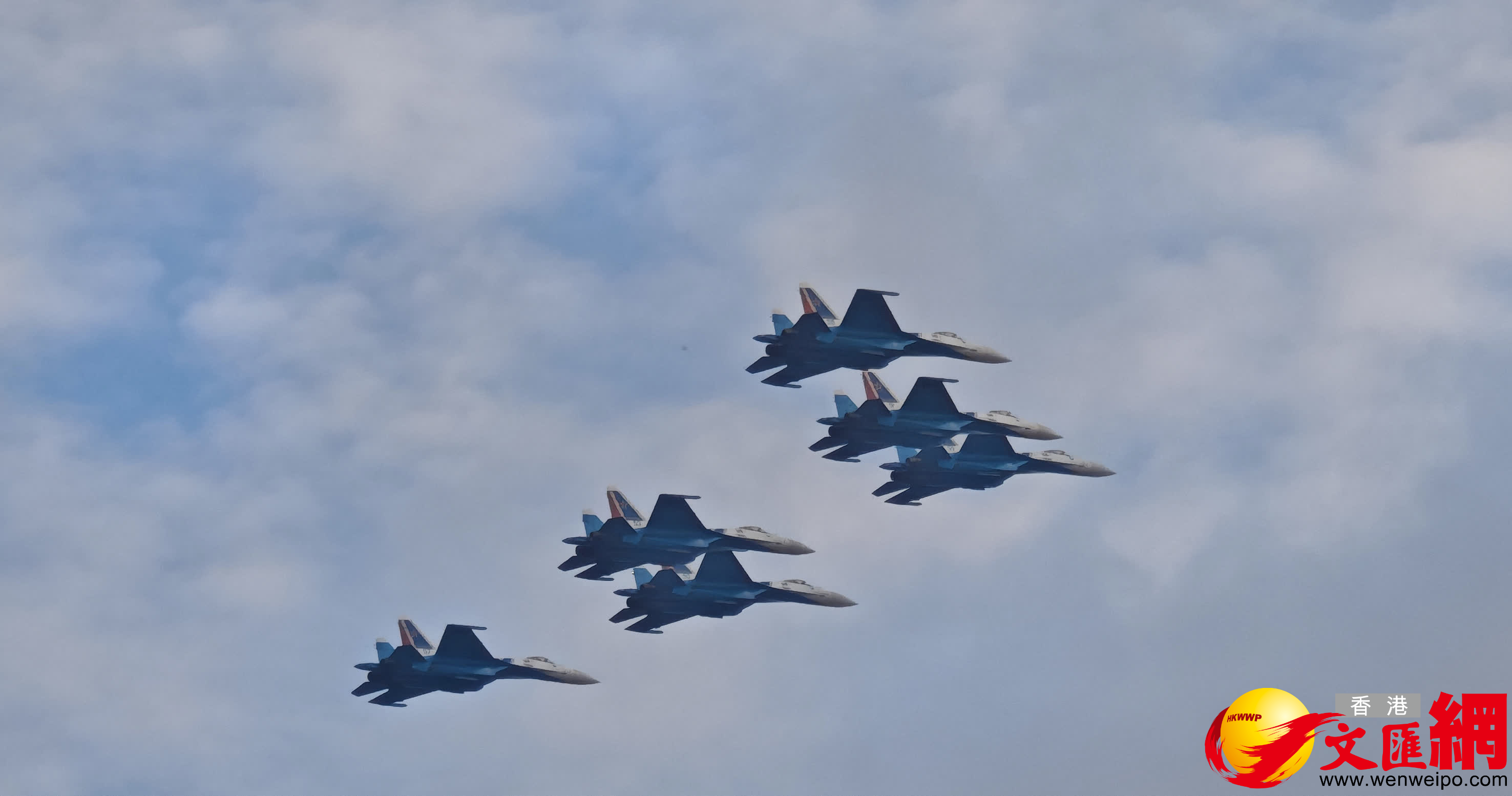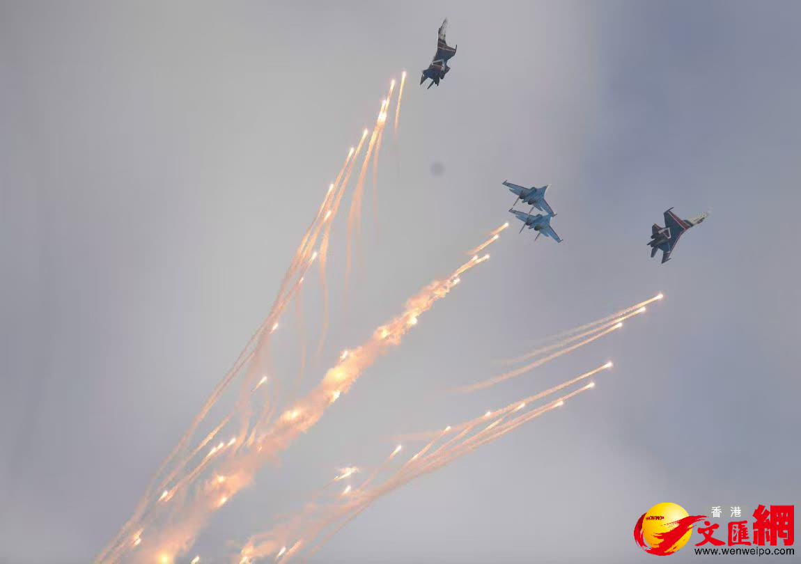 (香港文匯網記者 黃慧 江西報道)10月31日至11月2日,由南昌市人民政府主辦的2025南昌飛行大會暨航空產業博覽會在南昌舉行。期間,全球唯一使用重型戰鬥機進行特技飛行的表演隊——俄羅斯「勇士」飛行表演隊駕駛6架蘇-35S與1架蘇-30SM戰機完成一系列高難度科目:既有6機「疊羅漢」的震撼陣型,也有4機「菱形」密集編隊的精準默契,更有雙機「對頭」交錯、「鏡像」同步飛行的驚險瞬間,以及單機極限機動的驚艷表現。