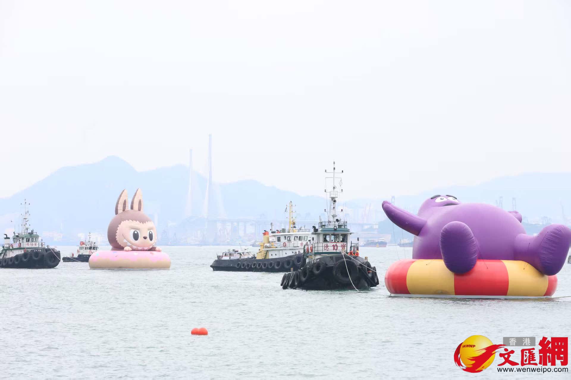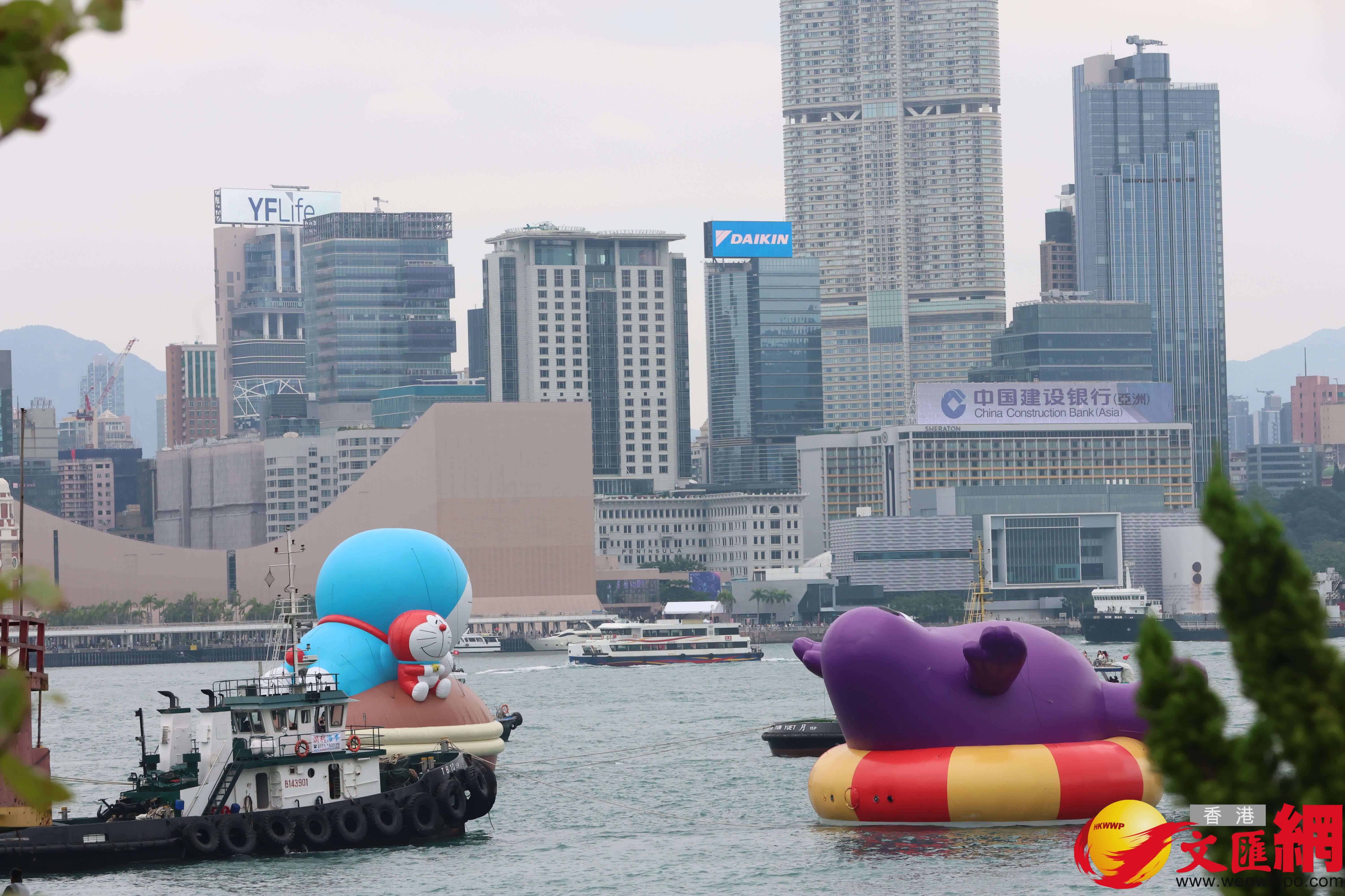 多啦A夢、KAWS & 芝麻街(Elmo)、滑嘟嘟及LABUBU四座巨型海上充氣雕塑展示8日以來,已吸引成千上萬市民旅客前來駐足觀賞打卡,今日更組成「夢幻艦隊」,於下午2時正式啟航,依次駛離金鐘添馬公園對開海域,巡遊維港兩岸兩圈,歷時逾三小時,為香港獻上一場前所未見的海上藝術盛典。