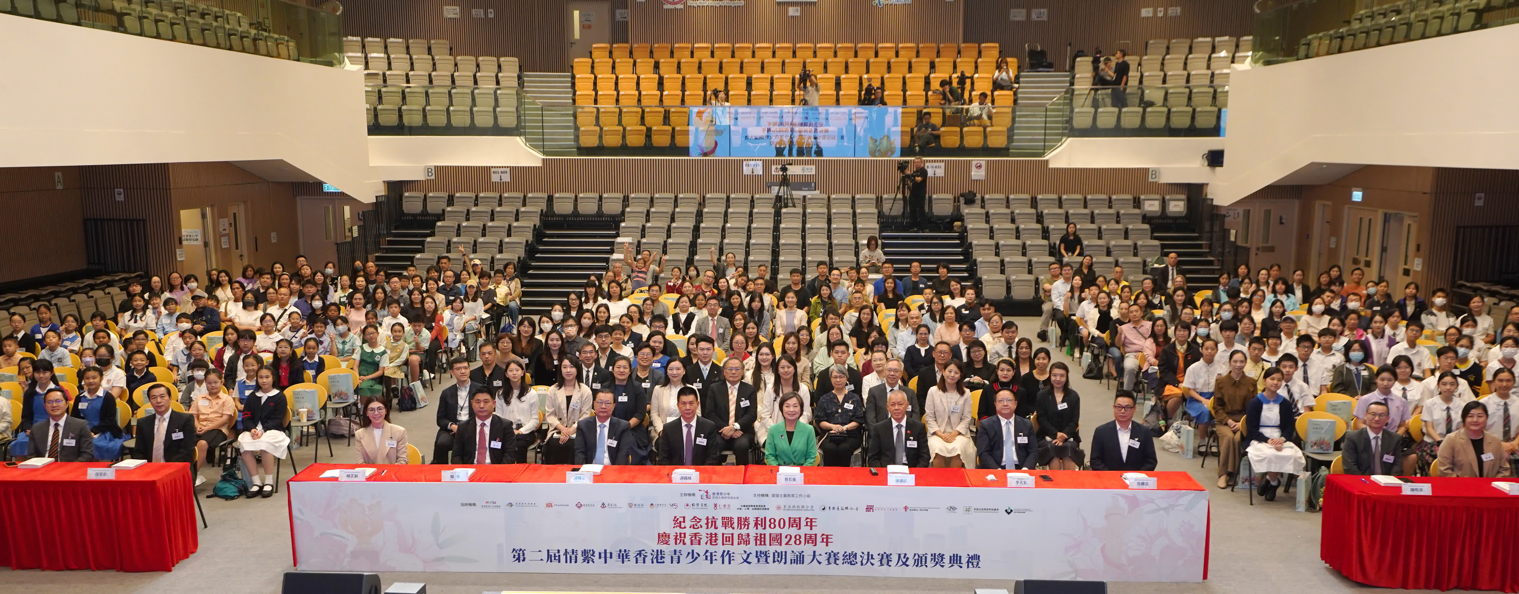 香港文匯報訊(記者 楊梓穎)今年適逢中國人民抗日戰爭暨世界反法西斯戰爭勝利80周年以及香港回歸祖國28周年,為深化香港青少年對國家與民族歷史的認知,厚植家國情懷,香港青少年愛國主義教育基金會舉辦第二屆情繫中華香港青少年作文暨朗誦大賽,今日舉行總決賽及頒獎典禮,本屆比賽以「回歸」與「抗戰勝利」為主題,旨在鼓勵同學透過比賽提升寫作與朗誦水平,同時增強國民身份認同,培養正面價值觀與態度。有獲獎學生表示為取材而訪問有經歷過回歸的父母及祖父母。