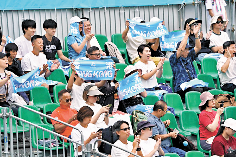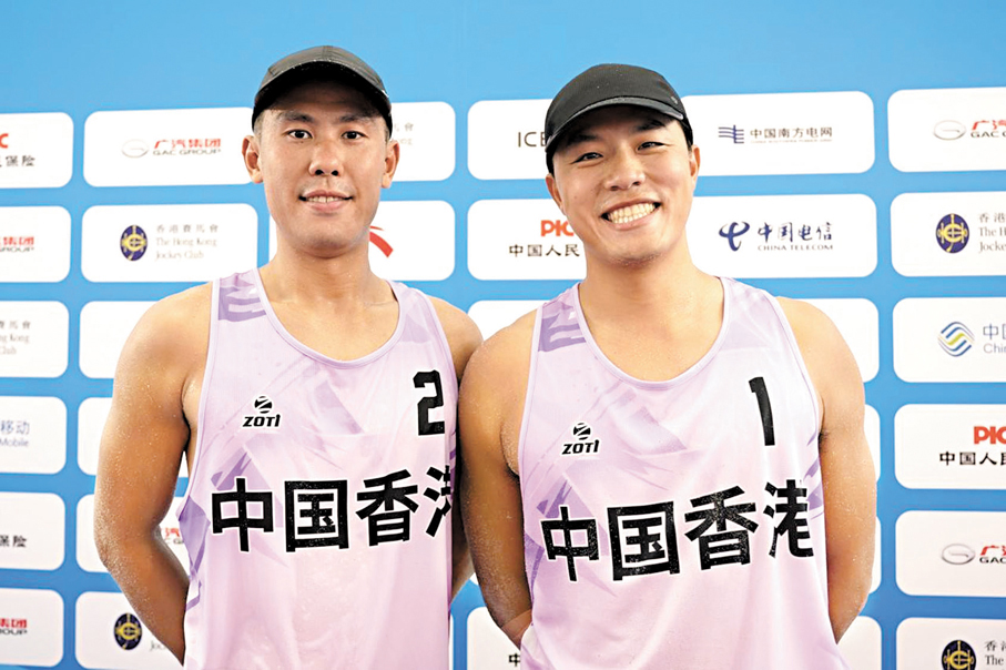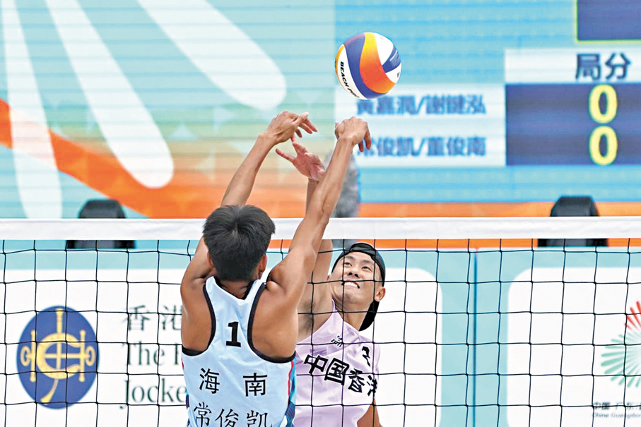 第十五屆全國運動會沙灘排球比賽昨日(1日)續在維多利亞公園舉行,賽事氣氛持續高漲,除七個輪椅座席外,其餘門票已全部售罄。頭場由港隊組合謝鍵泓/黃嘉潤登場迎戰海南代表常俊凱/董俊南,港將最終以直落兩局不敵對手。雖然謝鍵泓/黃嘉潤首兩場小組賽均落敗而回,但謝鍵泓認為與省隊交手獲益良多,二人又指出與職業水平的差距在於穩定性。 ●圖/文:香港文匯報記者 張發兒