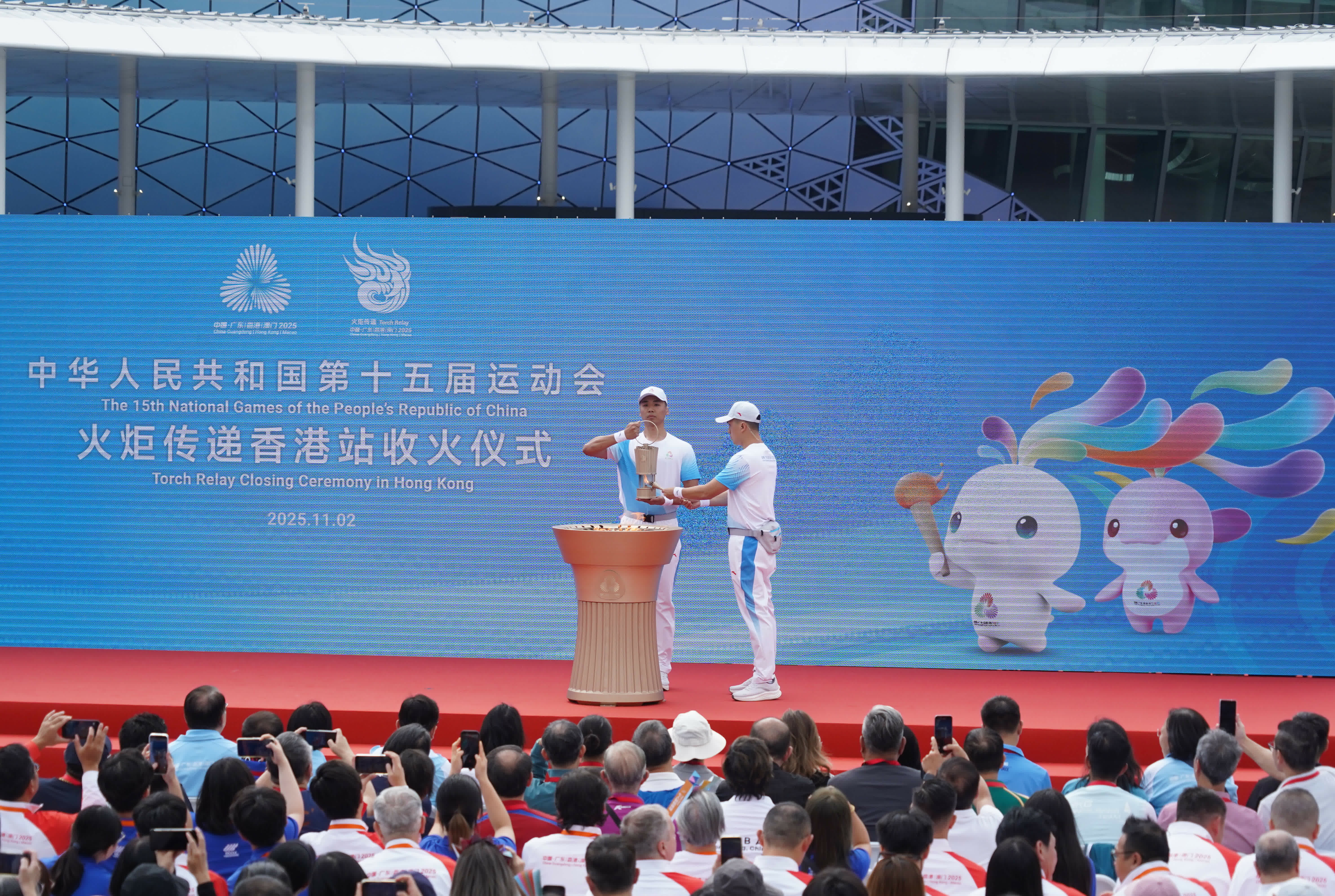 香港文匯報訊 十五運會火炬傳遞於今(2日)早上9時30分分別在香港、澳門、廣州、深圳四個城市同步舉行,共有200棒火炬傳遞,每個城市各有50棒。香港的火炬傳遞儀式歷時約1小時15分鐘,最後一名火炬手、劍擊運動員佘繕妡約上午10時47分抵達啟德體育園中央廣場,並燃點場內火種盆。火炬護衛將火種移至火種燈,火種將送往廣州進行融火儀式。署理行政長官陳國基在第十五屆全國運動會火炬傳遞香港站收火儀式致辭時指,50位來自不同界別的火炬手,一棒接一棒傳遞,沿途跑過的每一步,都伴隨着市民熱烈的歡呼和打氣。這份全城投入的熱情,不僅向世界展現香港的活力,亦呈現我們以「簡約、安全、精彩」的原則,順利完成火炬傳遞,「祝願第十五屆全國運動會取得圓滿成功。」