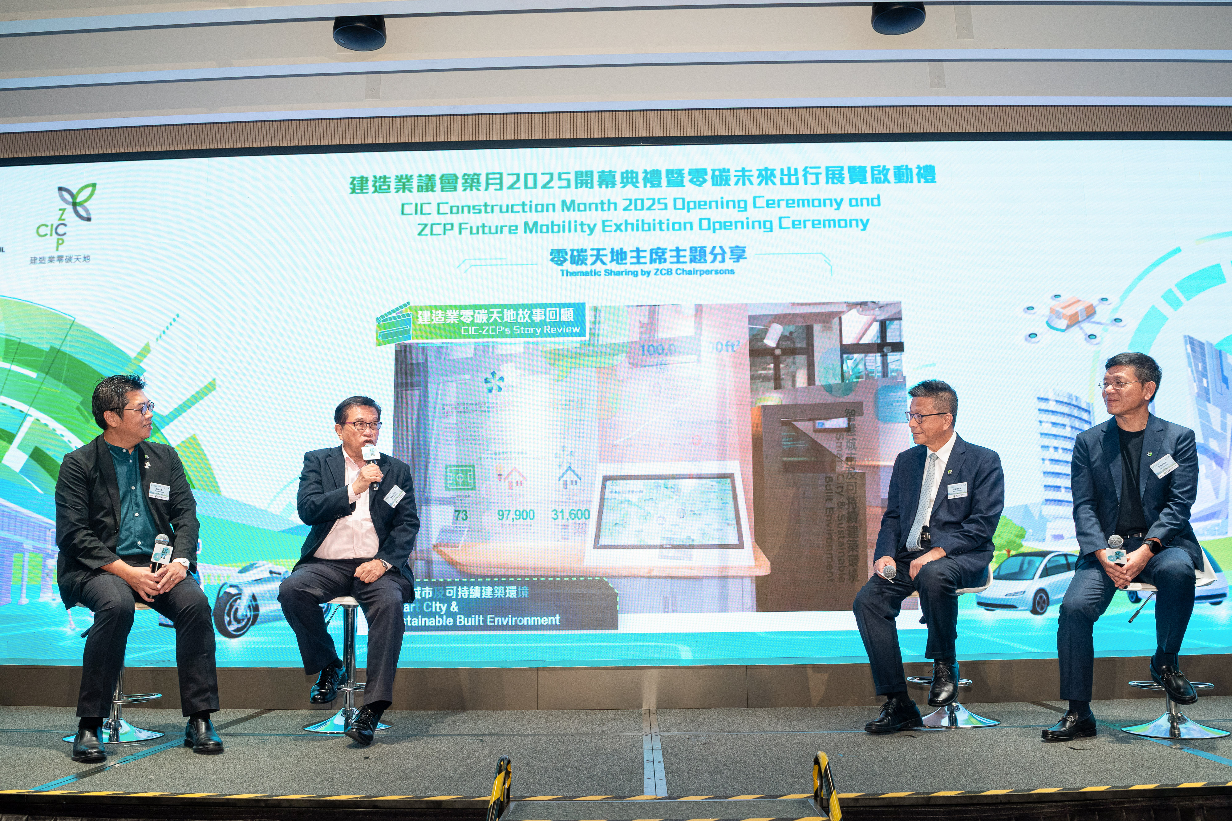 由建造業議會主辦的建造業年度盛事「築月2025」暨「零碳未來出行展覽」啟動禮於周五 (10月31日) 假建造業零碳天地舉行。典禮由發展局副秘書長(工務)林雅雯、渠務署署長莫永昌、建造業議會主席何安誠教授工程師、建造業議會執行總監鄭定寕工程師及零碳天地管理委員會主席符展成擔任主禮嘉賓,為盛事揭開序幕。