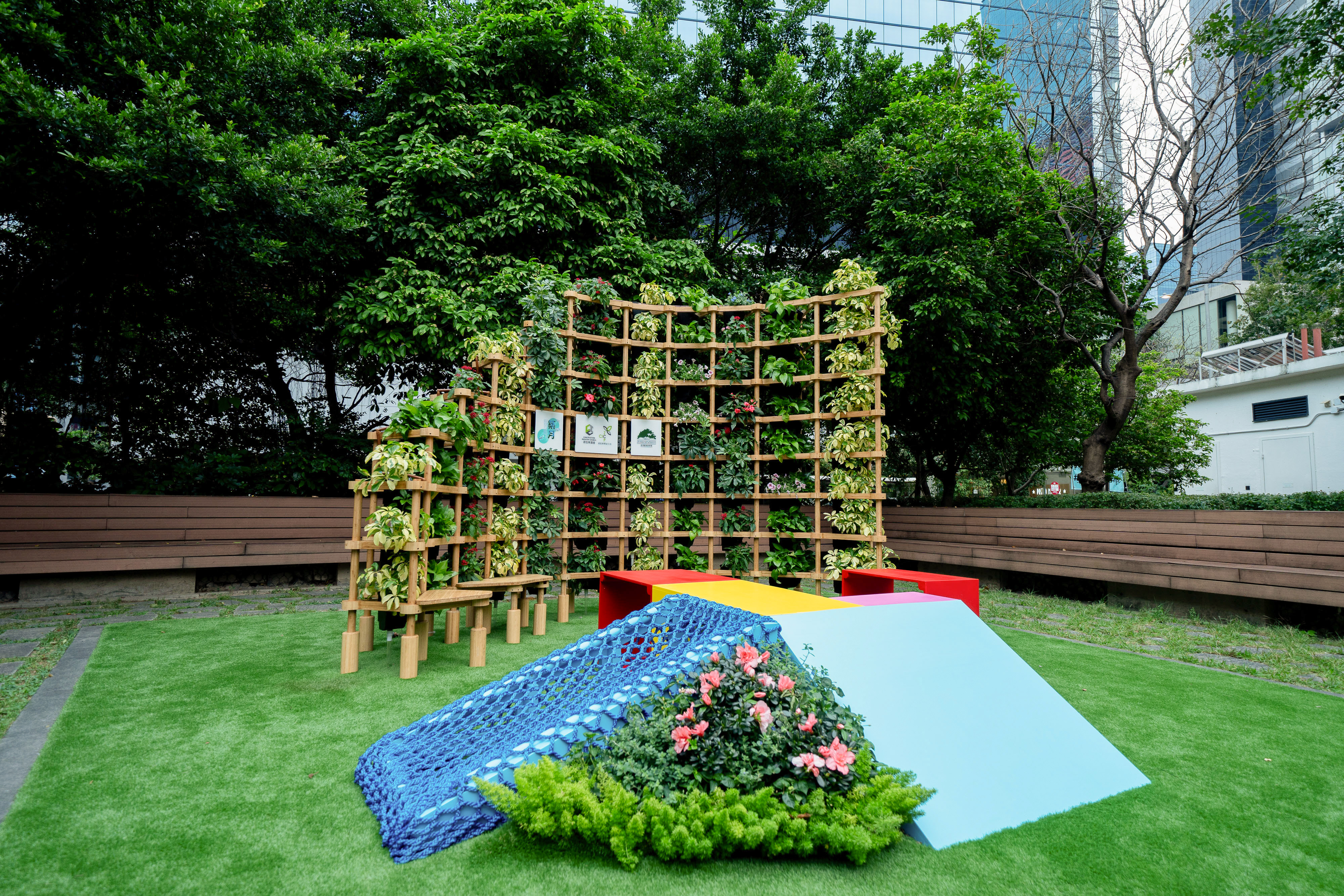 「築月」另一焦點當屬「築樂園3.0」組裝合成園境組件隆重開幕,此項目設計概念源自早前由香港園境師學會聯同房屋局、議會及零碳天地合辦的「幸福『營造』園境組件設計比賽」得獎作品,中學及大專院校得獎學生以創新思維及「Mi∞」概念,實踐以「組裝合成」建築法締造充滿幸福感的綠化未來,體現新一代對綠色建築的理解與實踐。