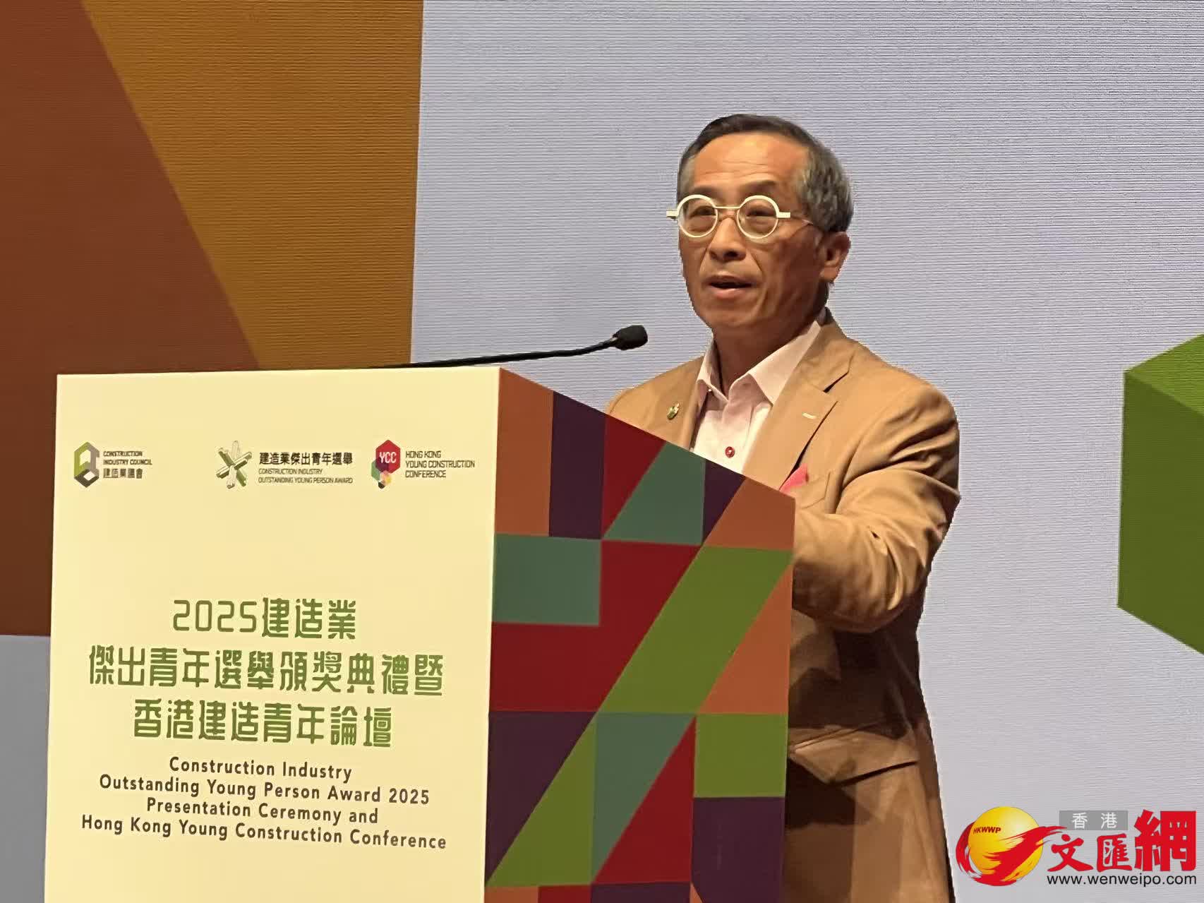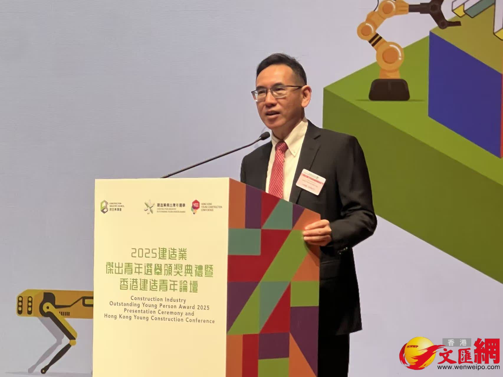 特區政府署理發展局局長林智文致辭時表示,建造業正迎來兩大機遇。第一,行業早不是「揀石仔」,而是朝着數碼化、智能化的方向前進包括積極推廣各類高效的建築新科技,例如建築訊息模型(BIM)、組裝合成建築法(MIC)等創新技術,並廣泛應用人工智能及建築機械人,同時開發數碼綜合平台,透過實時數據分析及AI技術精準預測工程進度,提升成本效益。第二,鑑於香港憑藉內聯外通的獨特優勢,加上科技創新的驅動力,近年特區政府在「一帶一路」戰略中開拓更廣闊的發展空間,例如今年8月與沙特阿拉伯簽署備忘錄,成功打開中東市場,以及9月舉行的第十屆「一帶一路」高峰論壇安排香港業界與內地及國際夥伴直接對接,推動業界「拚船出海」。