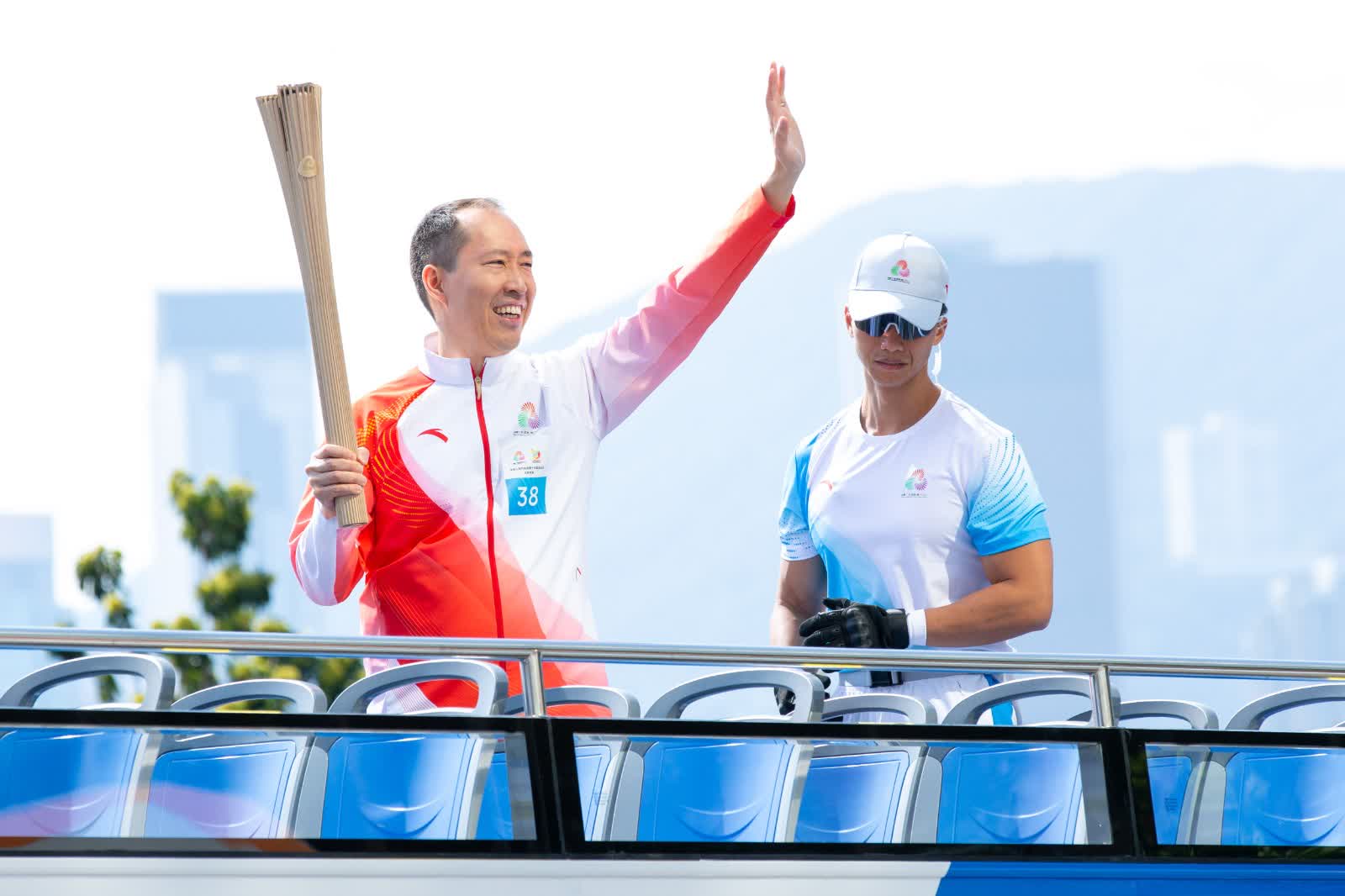 十五運會火炬傳遞今早在香港、澳門、廣州、深圳四個城市同步舉行。香港站第38棒火炬手、信和集團主席黃永光感言,能夠擔任全運會火炬手之一,是莫大榮譽。他感謝中央政府和香港特區政府給予這個寶貴機會,也感謝組委會成功籌辦這場盛事。