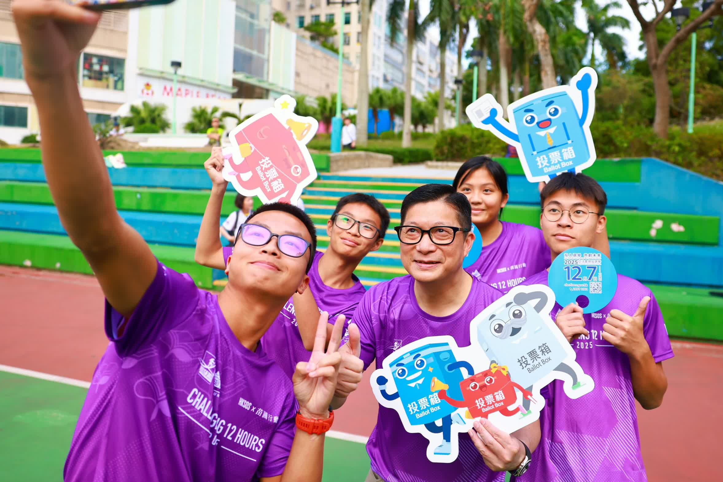 香港文匯報訊(記者 蕭景源)立法會換屆選舉投票日定於12月7日舉行。保安局局長鄧炳強今日(11月2日)到油塘三家村,為苗圃行動「挑戰12小時」慈善越野馬拉松主禮,除為一眾跑手打氣外,更呼籲跑手在選舉日踴躍投票。