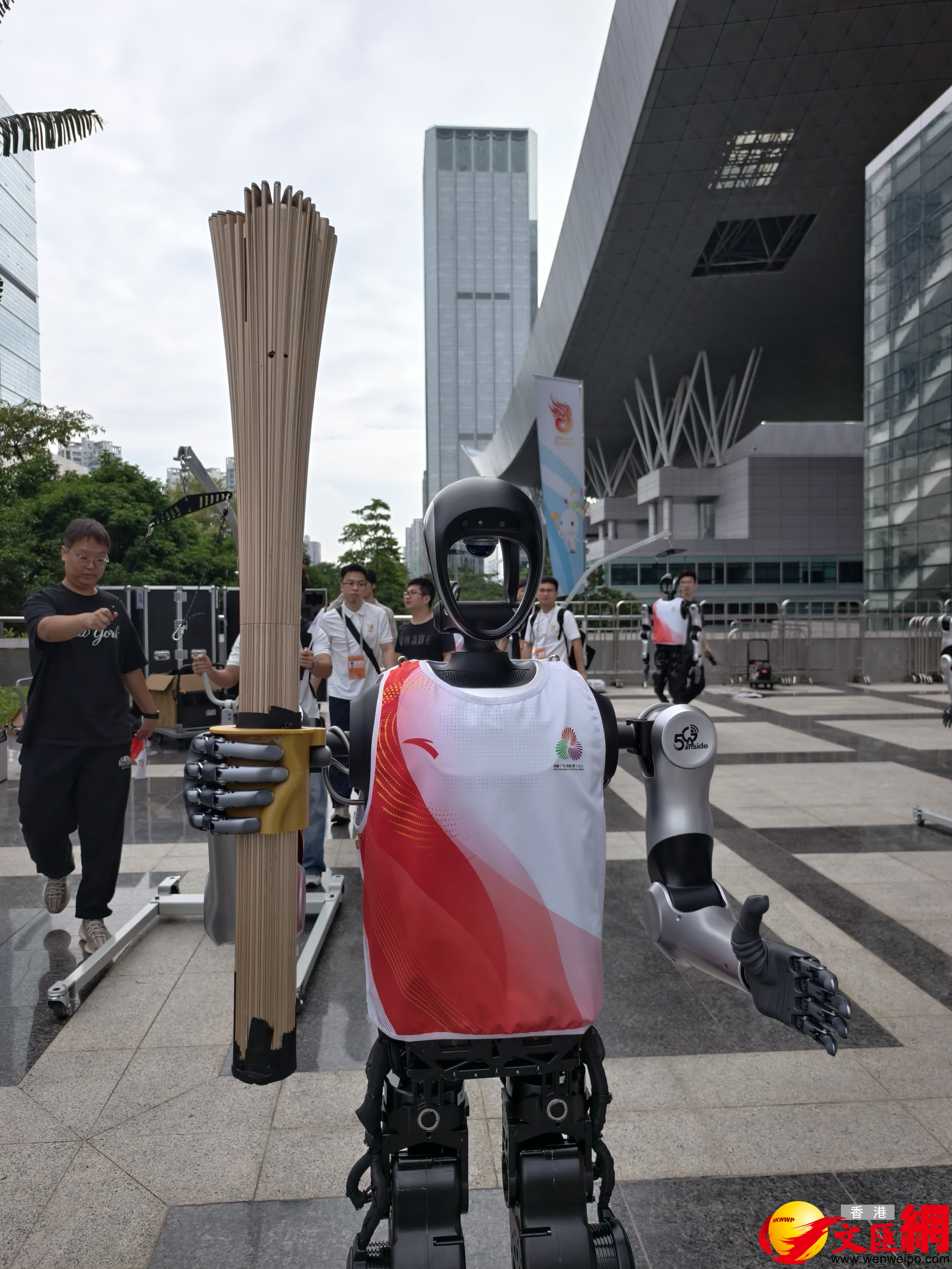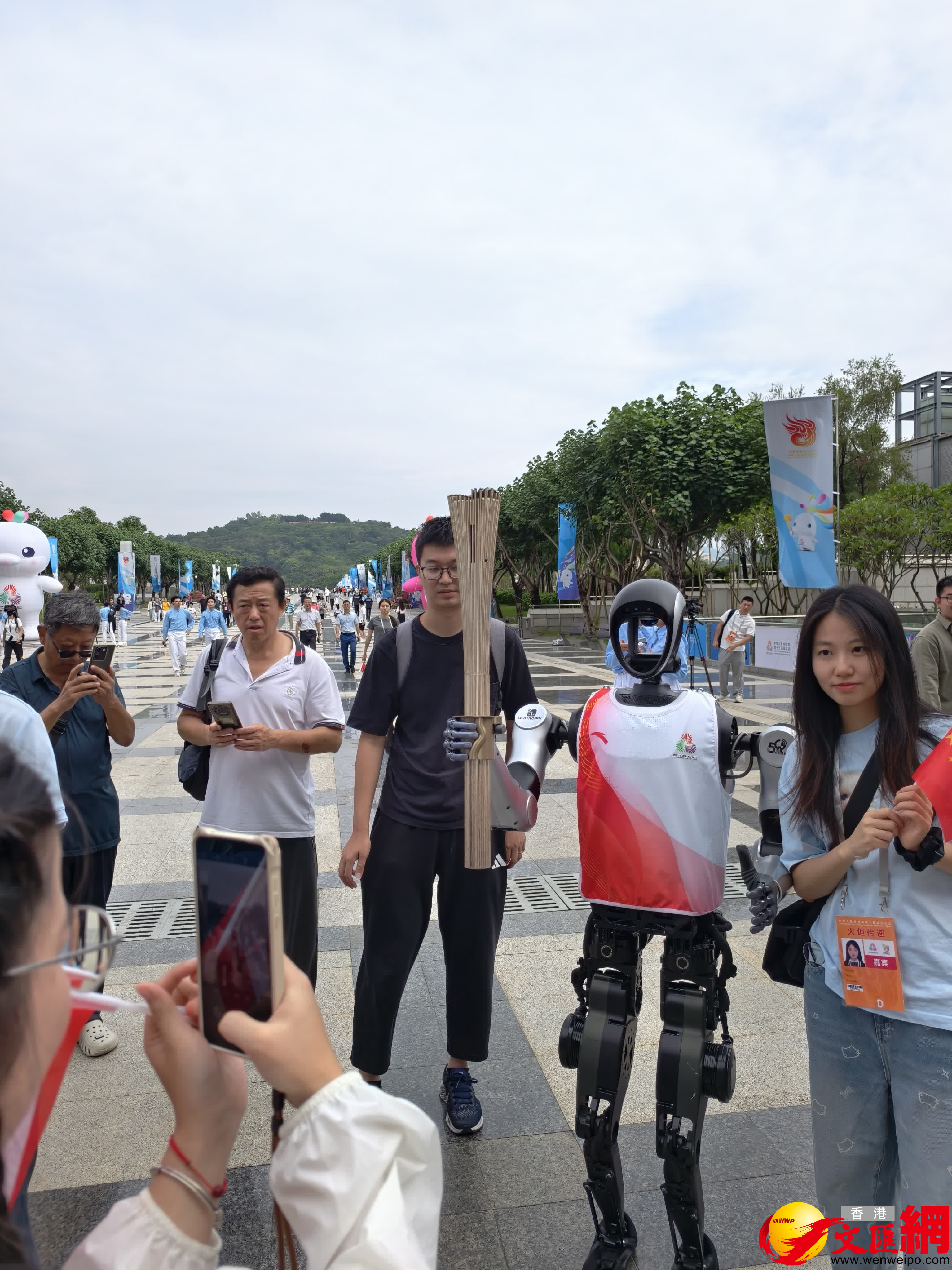 (香港文匯網記者 胡永愛)11月2日,十五運火炬在四地傳遞,其中深圳站的機器人火炬手「夸父」以優美的姿態順利完成火炬傳遞後,這一「網紅」火炬手立馬被市民圍觀與爭相合影。「夸父」由樂聚智能(深圳)股份有限公司(以下簡稱「樂聚」)全自主研發,「我們從接到任務到正式傳遞僅1個月時間,未對『夸父』本體進行任何特殊硬件改造,其形態與日常應用版本完全一致。」樂聚副總裁柯真東表示。