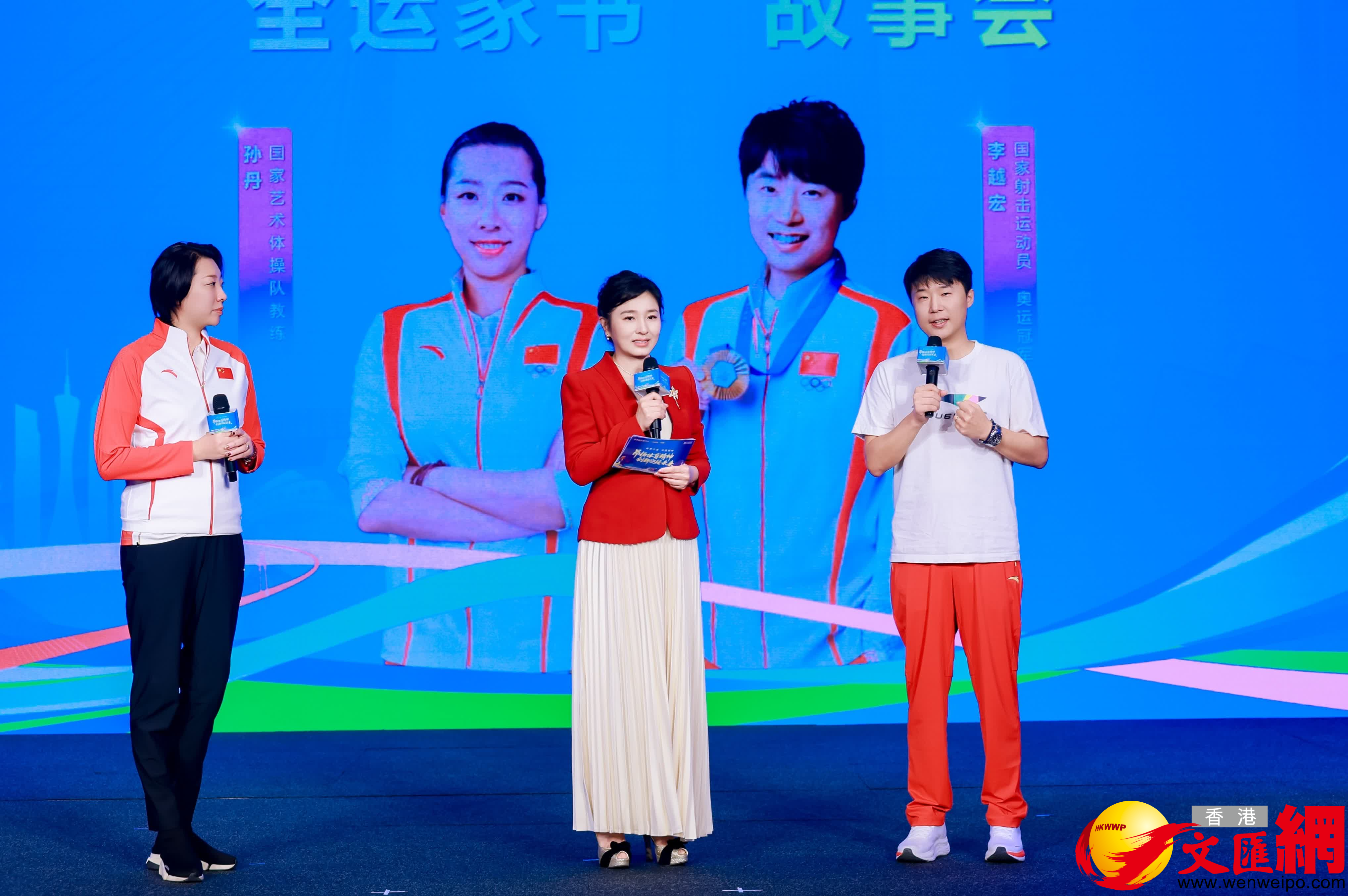 活動現場的「全運家書故事會」環節中,廣東省話劇院演員深情演繹了國家射擊隊運動員、奧運冠軍李越宏和國家藝術體操隊教練孫丹的家書。李越宏在給父母的家書中寫道,「小家」的支持,讓自己更有力量為「大家」拚搏、為國爭光。孫丹在家書中對藝術體操隊的姑娘們說,備戰沒有捷徑,那些重複千萬次的動作、咬牙堅持的時刻,都是未來站在奧運賽場上的底氣。李越宏、孫丹隨後登上舞台,分享家書背後的故事,展現追夢路上的初心與擔當,生動詮釋了中華體育精神的深刻內涵。