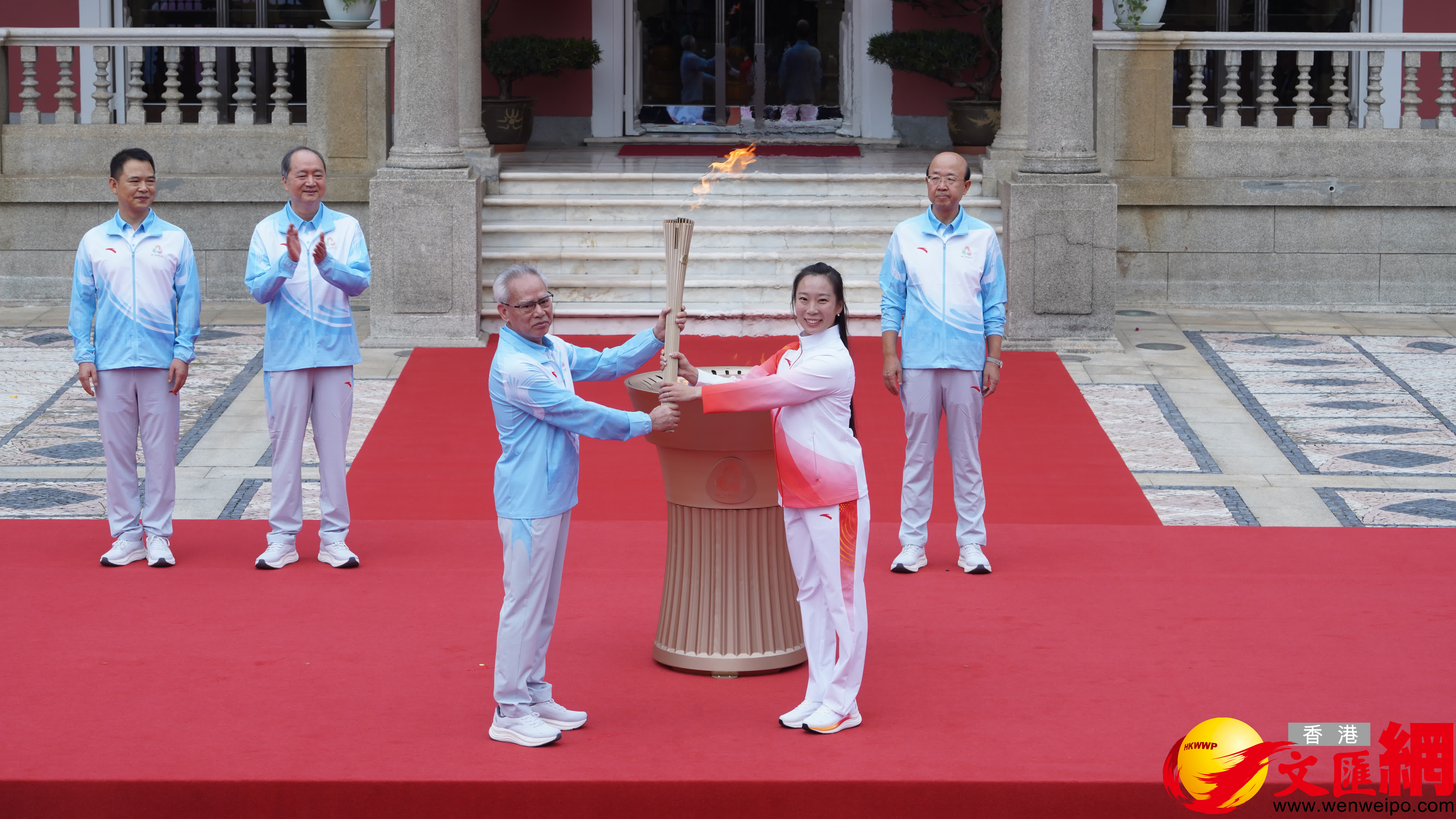 (香港文匯網記者 王祥康)第十五屆全運會火炬傳遞今早在香港、澳門、廣州、深圳四個城市同步舉行。澳門賽區起跑儀式在上午九時半在特區政府總部舉行,由澳門特區行政長官岑浩輝、中央人民政府駐澳門特別行政區聯絡辦公室主任鄭新聰、中華人民共和國外交部駐澳門特別行政區特派員公署特派員劉顯法、中國人民解放軍駐澳門部隊副司令員戴勁松大校出席主禮。