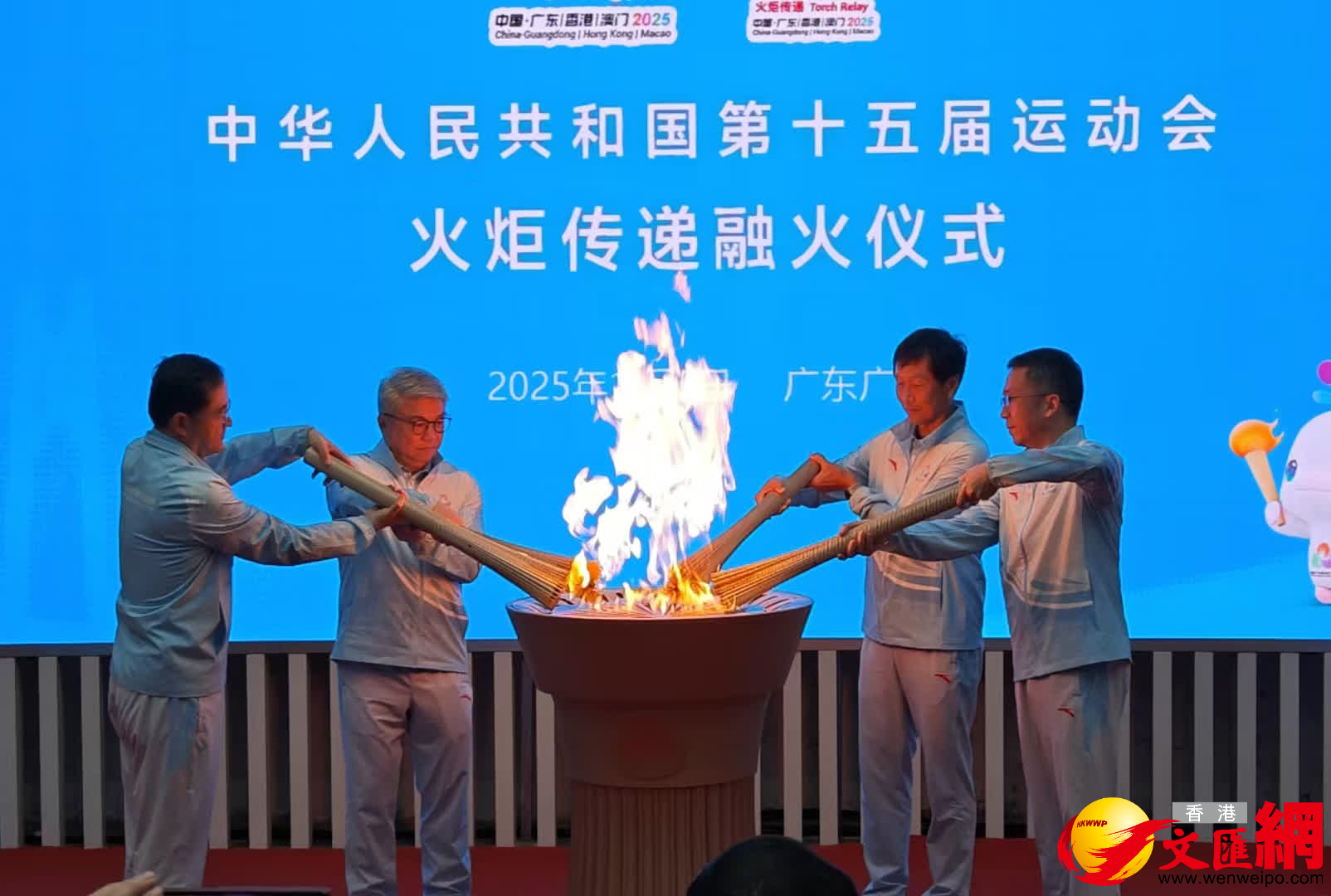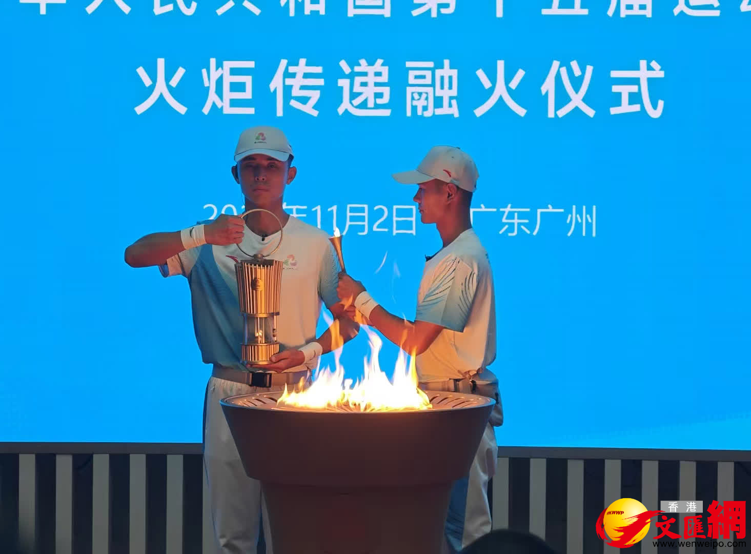 (香港文匯網記者帥誠 廣州報道)11月2日下午,來自香港、澳門、廣州、深圳四個城市的火種匯聚廣州,並在廣東奧林匹克體育中心舉行十五運會火炬傳遞融火儀式。
