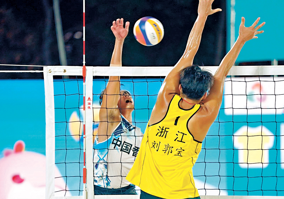 香港文匯報訊(記者 郭正謙)十五運會沙灘排球項目昨日續在維園上演,港隊女子組合歐陽瑋欣/袁廷芝成功打開勝利之門,以直落兩局21:16、21:19擊敗遼寧代表富宇菲/劉宜欣,其中次局更一度落後四分下熱血反勝,正職為老師的歐陽瑋欣和袁廷芝希望為現場觀賽的學生們樹立榜樣,言傳身教真正的體育精神。