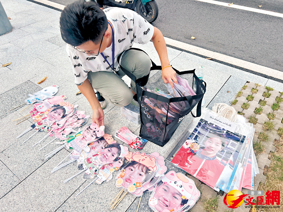 從現場看到,比賽周邊有不少小商販,製作了印有全紅嬋照片、名字的創意條幅和文創產品,不時有觀眾前來購買。還有商販別出心裁,在現場「兜售」比賽門票。當記者以為遇到「黃牛」時,上前才發現,這只是一張印有全紅嬋頭像的創意跳水門票,僅供愛好者收藏。