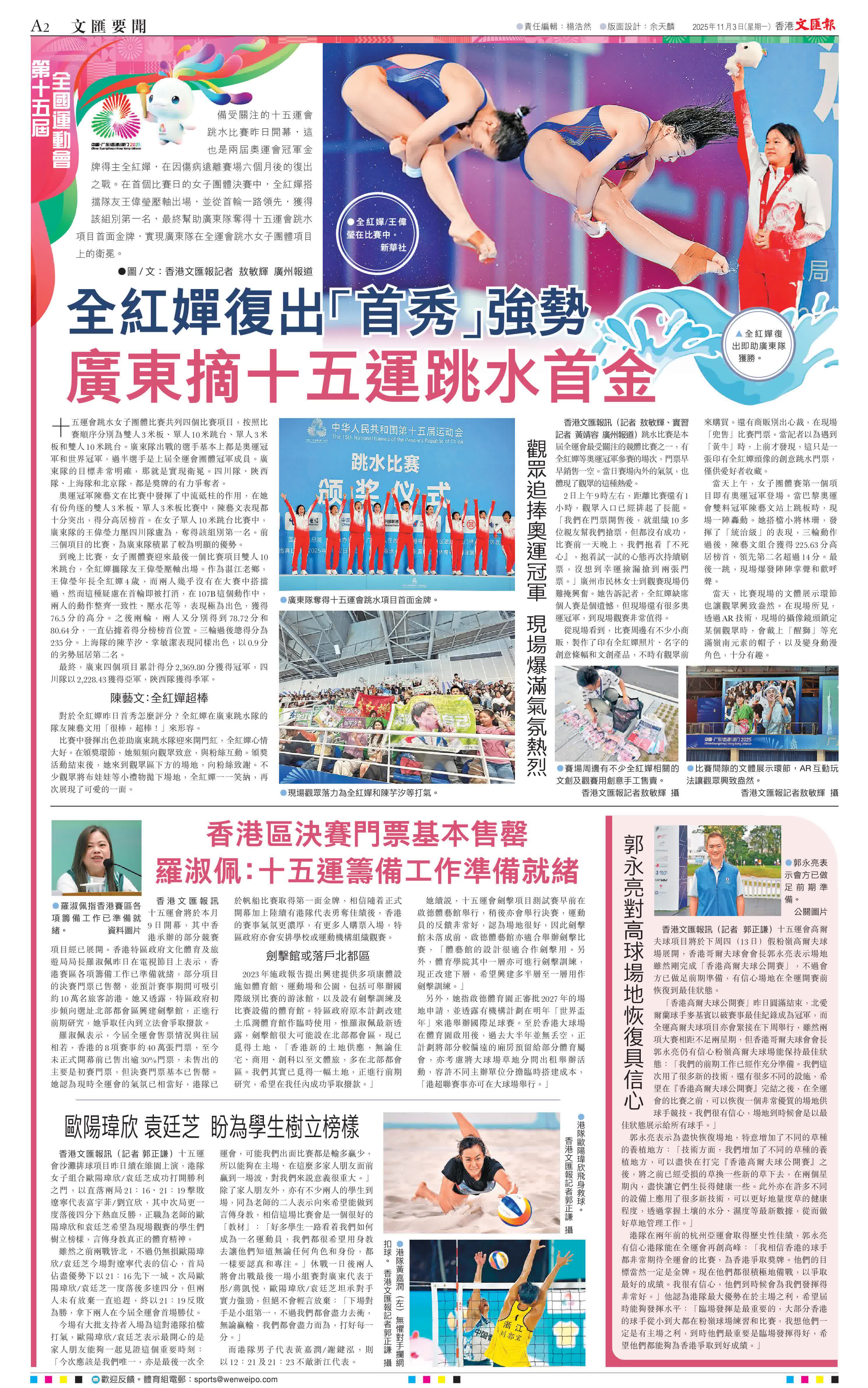 (香港文匯報記者 敖敏輝、實習記者 黃靖容 廣州報道)跳水比賽是本屆全運會最受關注的競體比賽之一,有全紅嬋等奧運冠軍參賽的場次,門票早早銷售一空。當日賽場內外的氣氛,也體現了觀眾的這種熱愛。