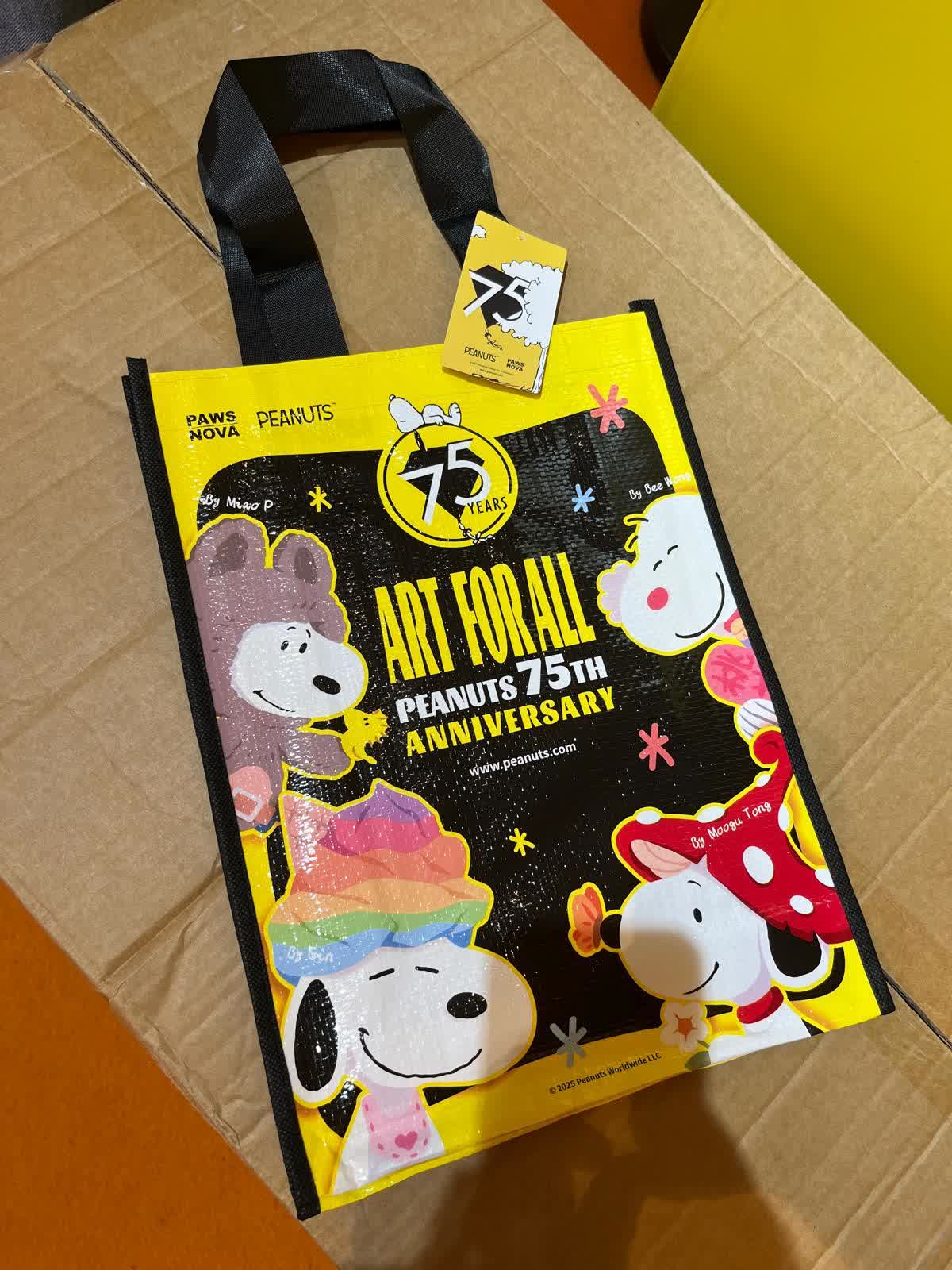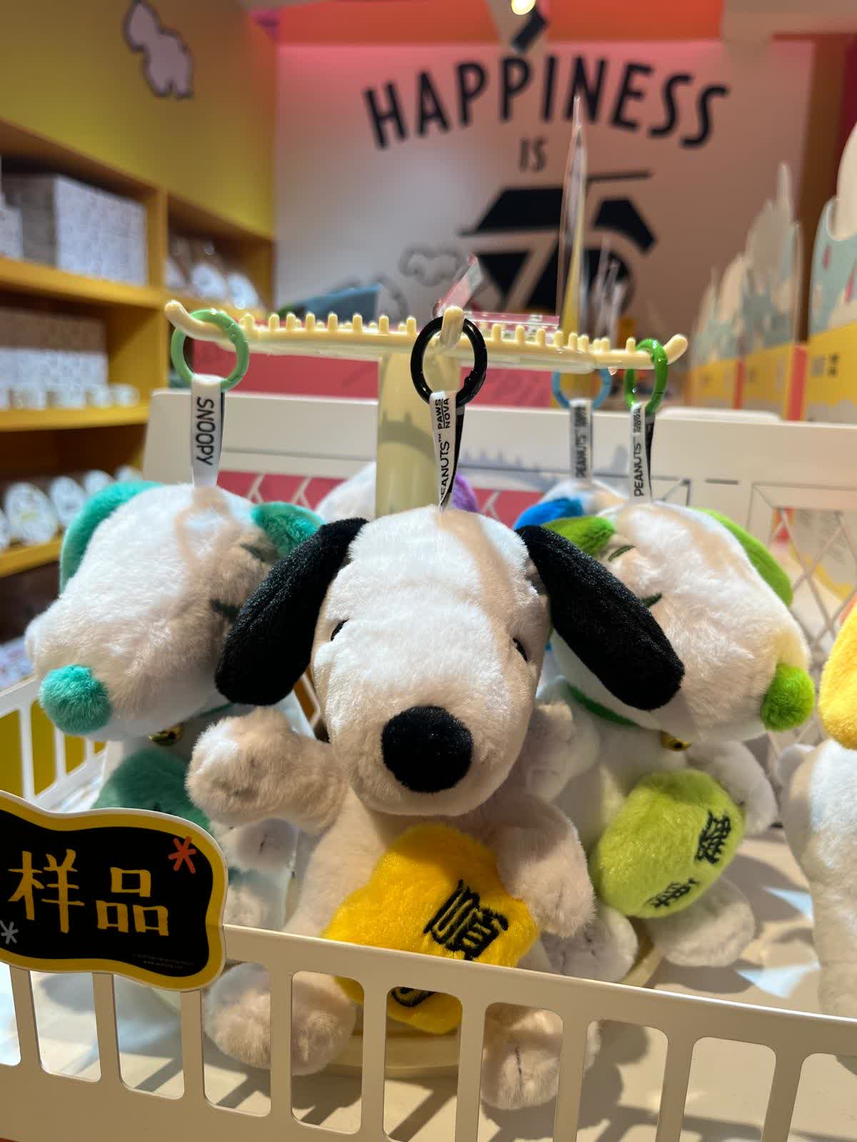 品牌的75周年購物袋亦搶手,買滿¥129以上可得到小購物袋;¥259則可獲大購物袋,更可抽獎一次贏取小禮物。購物袋散買分別是¥5、¥10,據知有港客特地花¥15買齊一大一小的購物袋,亦有不少港客入手好運毛絨公仔吊飾盲盒,史努比印章盲盒銷量亦不錯。