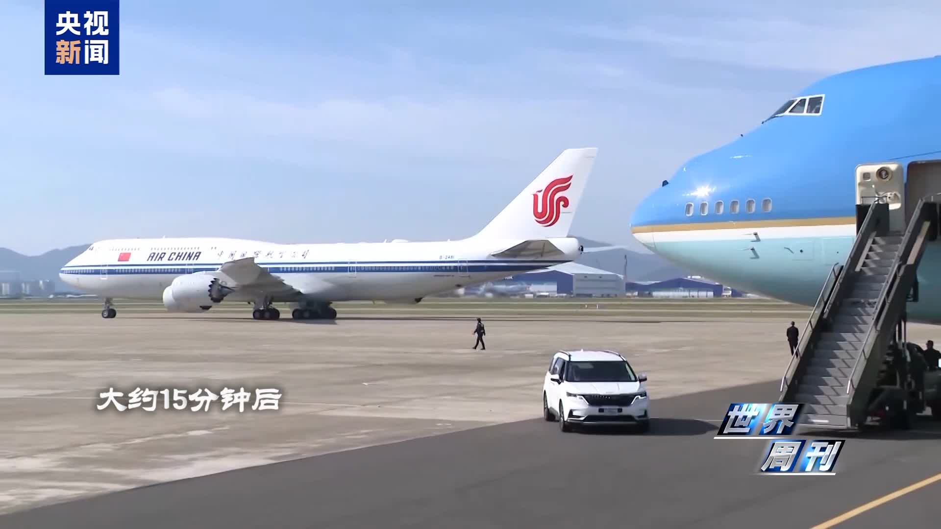 大約15分鐘後,習近平主席的專機降落在金海國際機場。