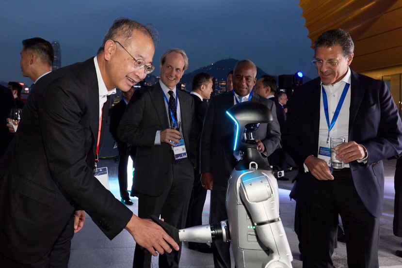 全球頂尖金融界人物昨晚到訪香港故宮文化博物館出席歡迎晚宴 ,在維港璀璨夜色下,欣賞麻雀設計的特別擺設,仲有機械人精彩表演。
