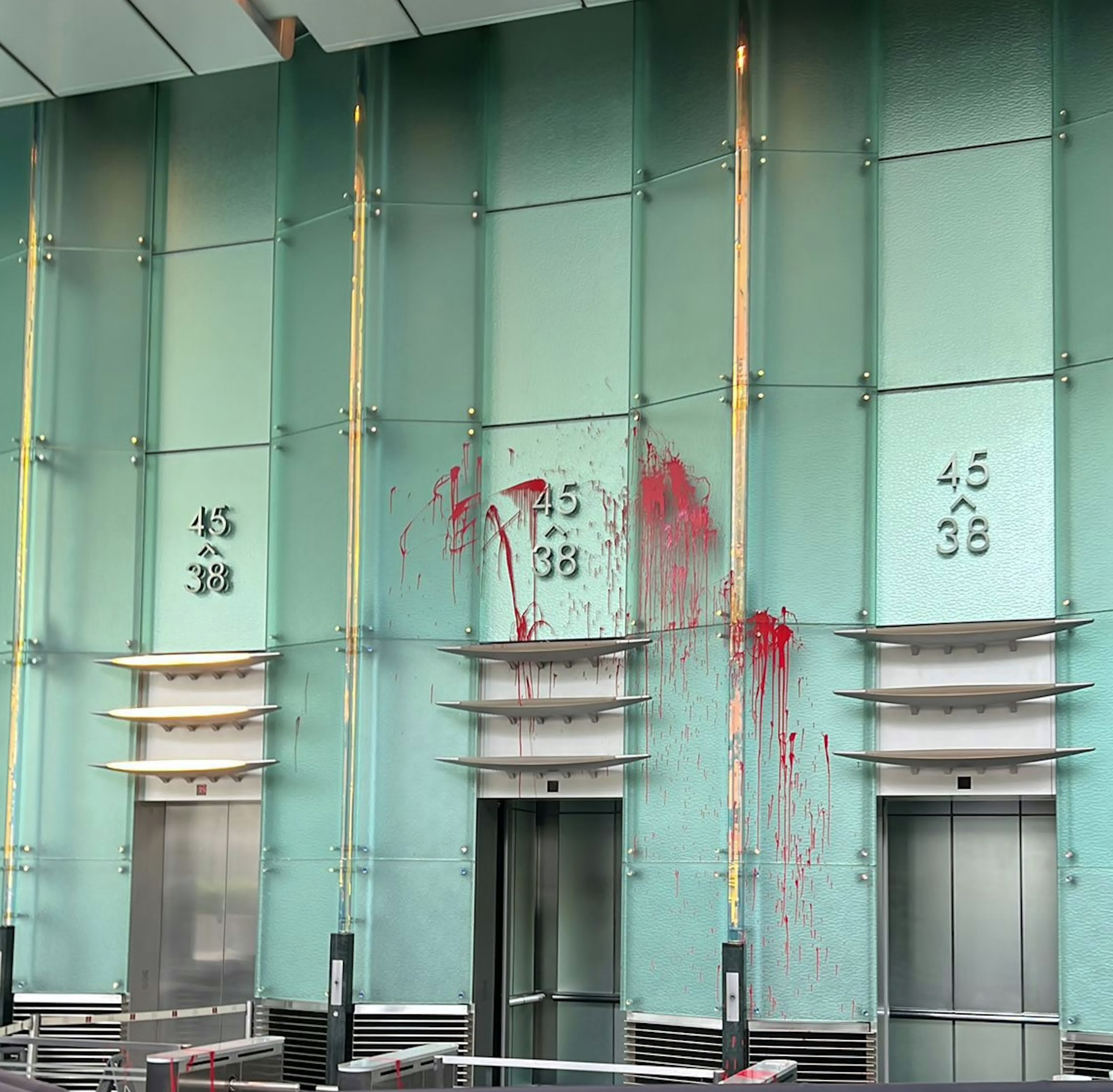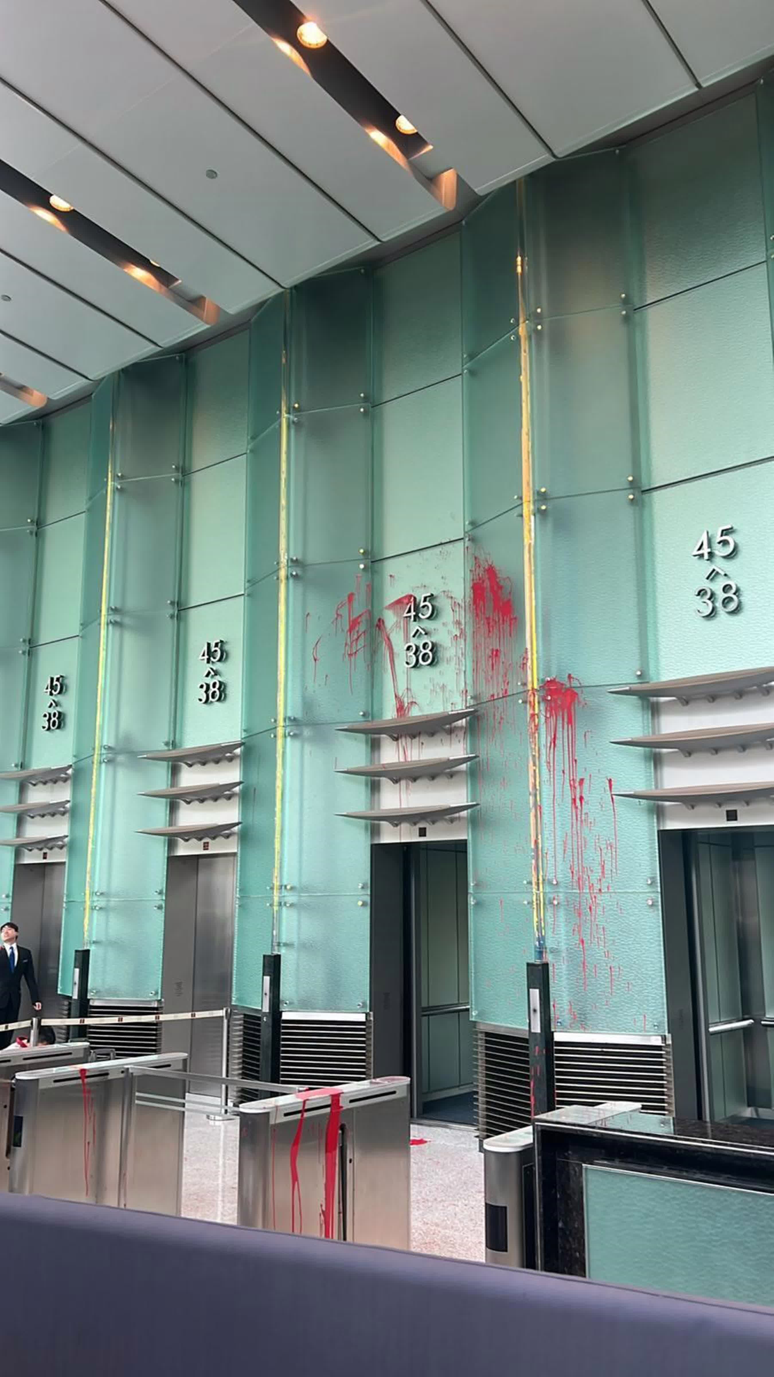 現場消息指,涉案被捕男子姓陳(49歲),昨日(3日)持往來港澳通行證抵港。今日事前曾於大埔購買3罐紅色油漆,其後到達上址大堂接待處向保安員要求上樓與李嘉誠會面。當保安員作出拒絕後,涉案男子突然發難將紅色油漆潑向閘機和擲向電梯大堂的牆壁,以致閘機、牆壁及地面沾滿紅色油漆。期間,保安員試圖阻止以致頸部受傷擦損。保安經理見狀立即報警求助。