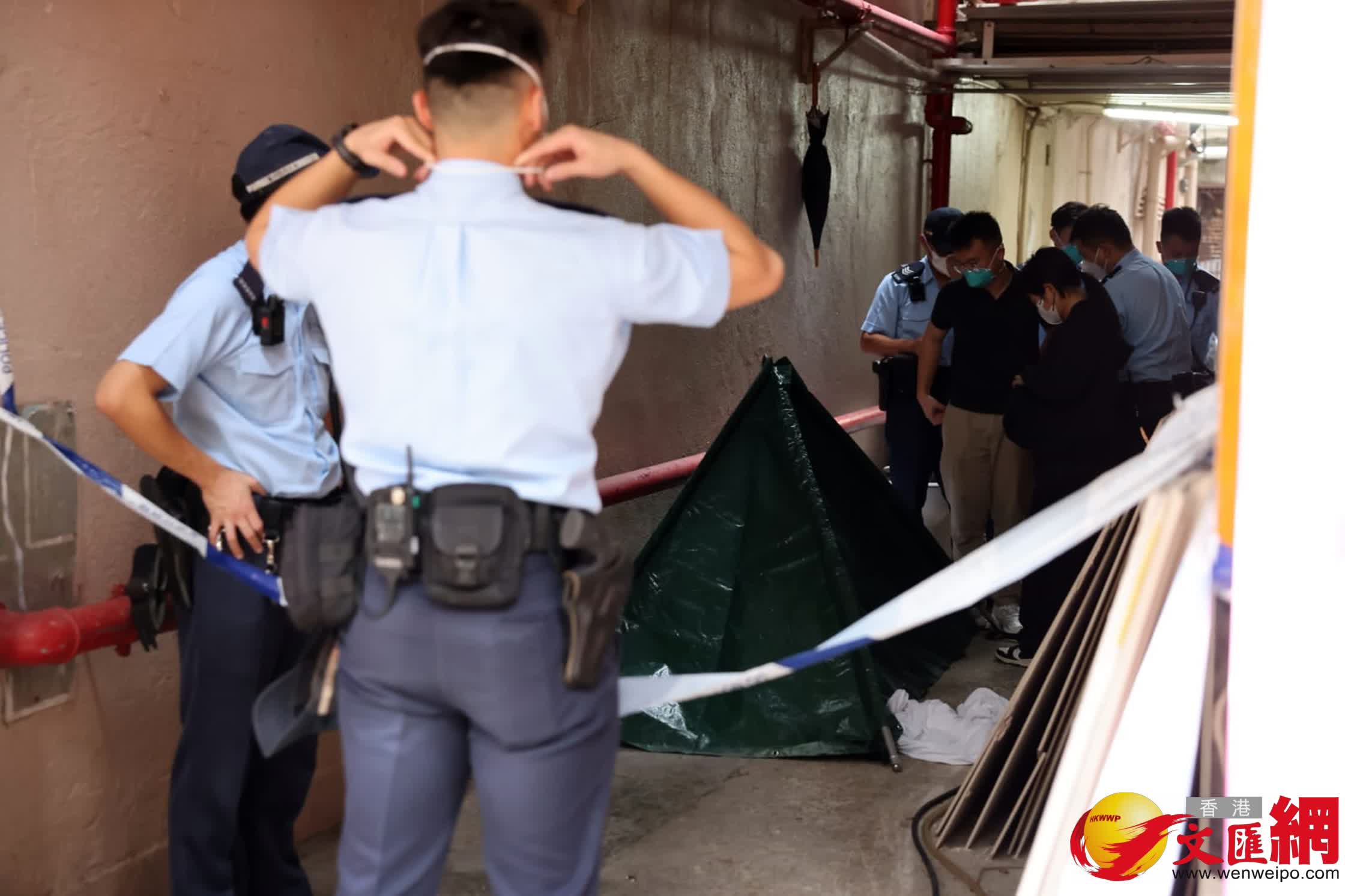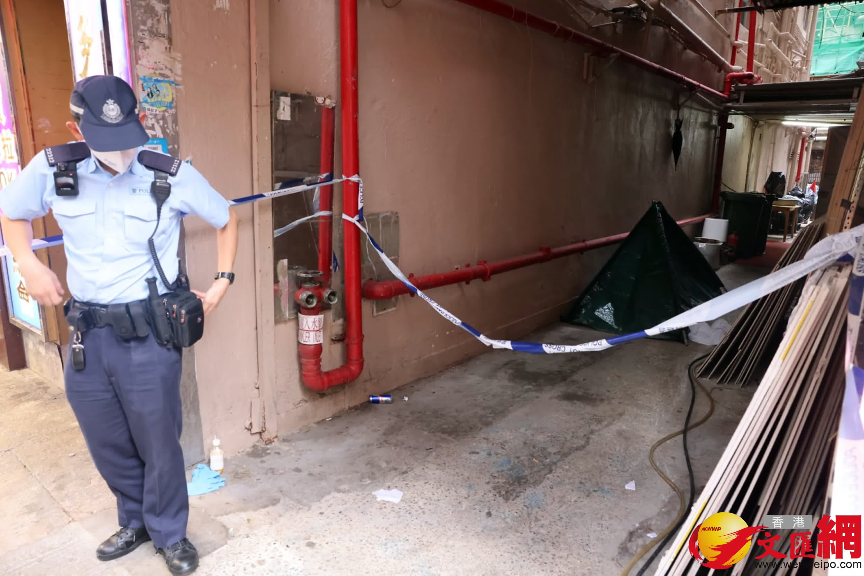 香港文匯報訊(記者 蕭景源)一名通渠公司男東主,今日(4日)在油麻地一大廈後巷疑獨自打開渠蓋工作時,意外吸入沼氣昏迷倒地,頭部伏在沙井內,直至40多分鐘後被胞姐發現報警,惜已證實死亡。渠務署事後派員到場了解。死者的親友事後趕到現場了解,當中妻子驚聞噩耗情緒激動,一度傷心痛哭,大喊:「老公、老公!畀番個老公我,救命呀!」要由親友攙扶。