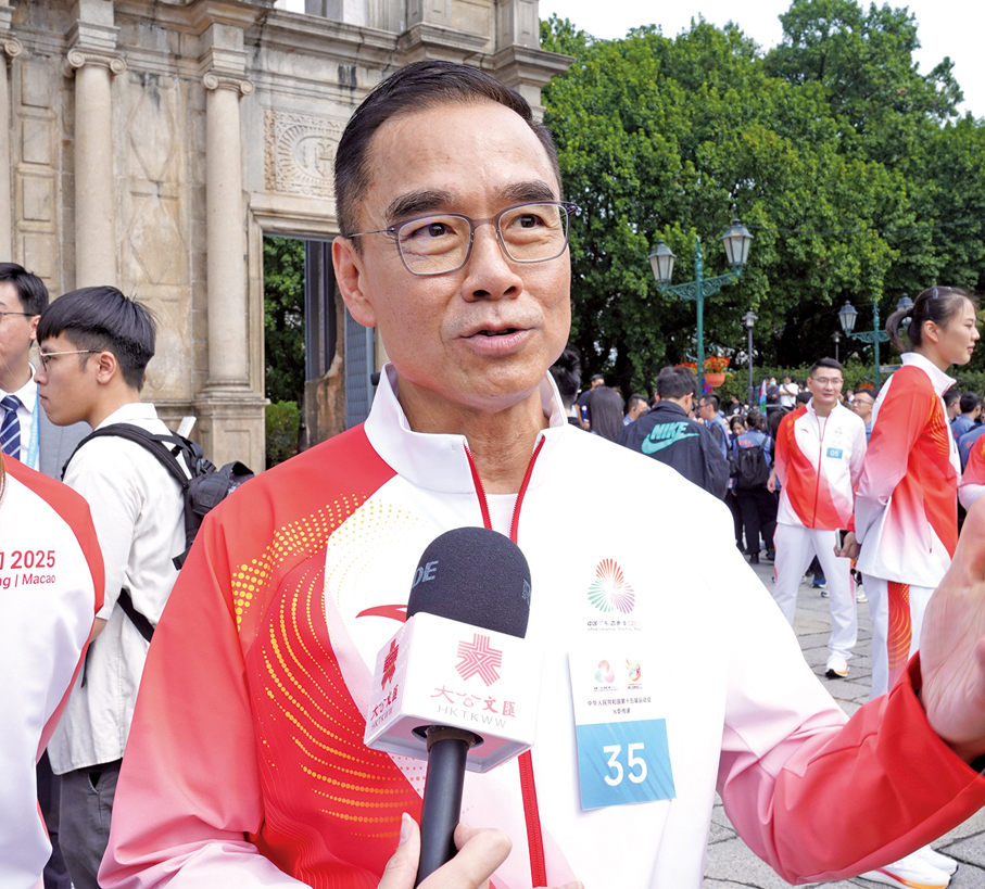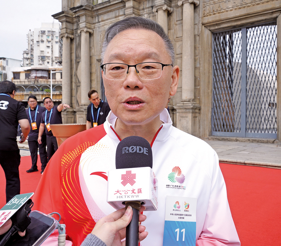 全國政協常委、立法會副主席何潤生:很榮幸能參與意義重大的火炬傳遞,澳門藉著全運會契機,將澳門世遺地標與體育精神結合,向全球展現澳門魅力。澳門作為「體育之城」,已具備舉辦大型賽事的場地與條件,未來將持續投入資源,推動體育與旅遊產業深度融合。