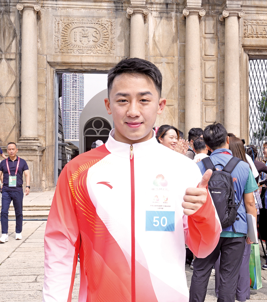 最後一棒火炬手 澳門首位全運會獎牌得主空手道運動員郭建恆:成功點燃聖火感到無比榮幸,跑上大三巴階梯時心情特別緊張。聖火象徵著中華民族團結一致、永不熄滅的力量,同時代表運動員的決心,接下來比賽將會全力以赴,力爭在主場為澳門特區爭取最高榮譽。