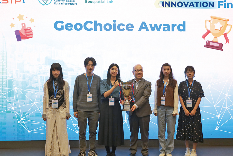 決賽現場設有「我最喜愛空間數據應用項目」獎項——「GeoChoice Award」。四強隊伍在決賽中全力以赴,展示各自的空間數據創新項目。經過激烈競逐,HabiPet憑借其切合寵物主人需求的一站式服務平台獲現場觀眾青睞,成功獲得此項殊榮。
