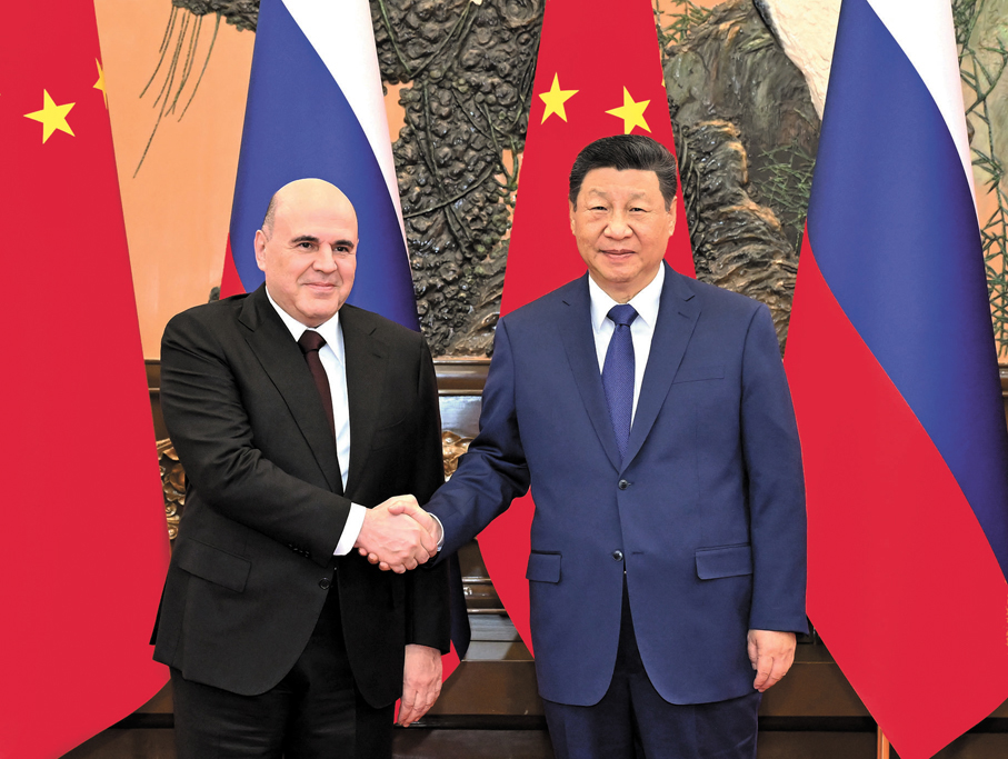 習近平指出,今年以來,中俄關係錨定更高水平、更高質量發展目標,在風高浪急的外部環境中篤定前行。維護好、鞏固好、發展好中俄關係,是雙方的戰略抉擇。我同普京總統在莫斯科和北京兩次會晤,就中俄關係中的戰略性、全局性問題深入交流,作出新的謀劃和部署。雙方要保持密切協調,落實好我同普京總統達成的重要共識,着眼兩國和兩國人民的根本利益,把中俄合作的蛋糕做好,也為世界和平與發展作出新的更大貢獻。