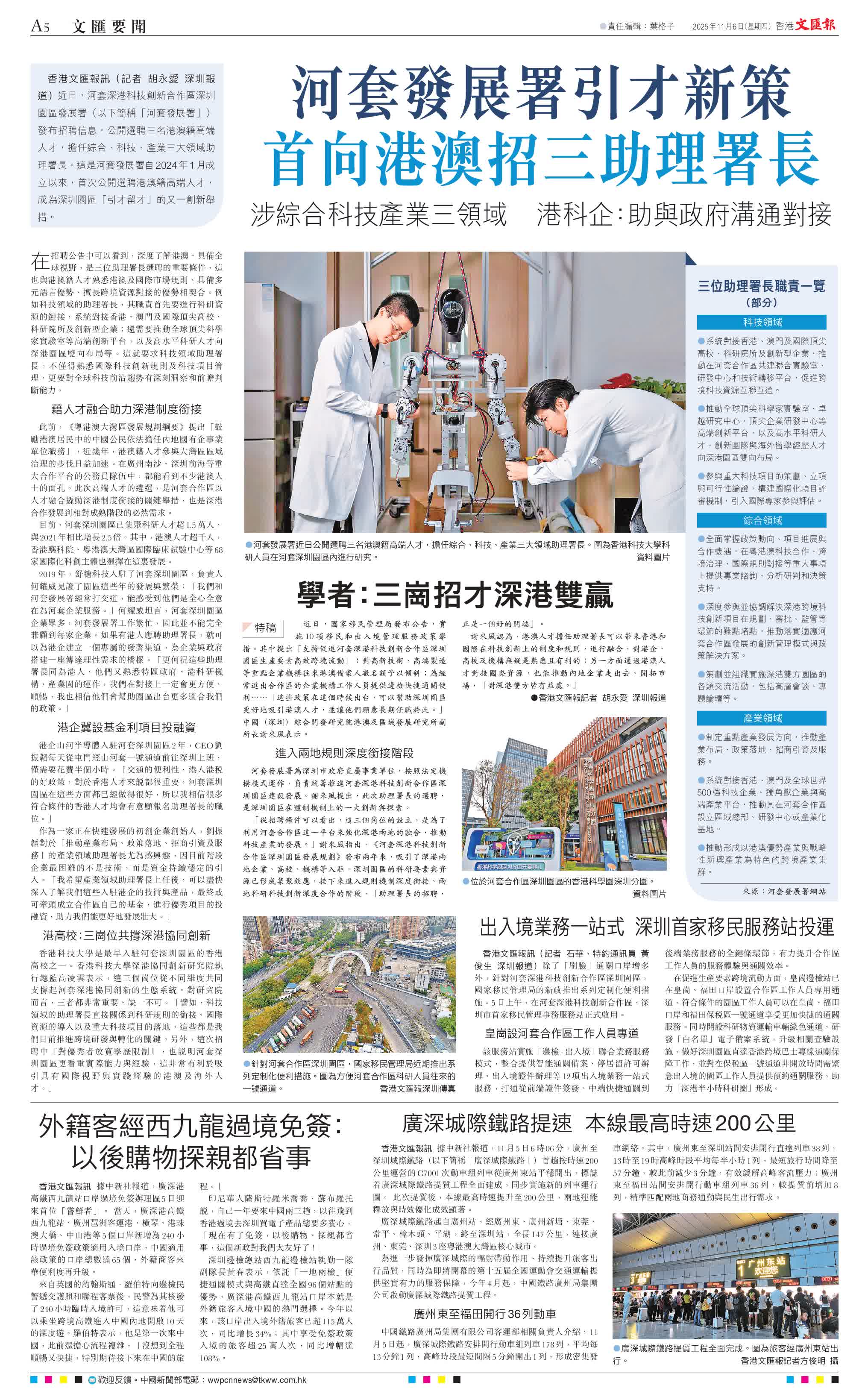 香港科技大學是最早入駐河套深圳園區的香港高校之一。香港科技大學深港協同創新研究院執行總監高凌雲表示,這三個崗位從不同維度共同支撐起河套深港協同創新的生態系統。對研究院而言,三者都非常重要、缺一不可。「譬如,科技領域的助理署長直接關係到科研規則的銜接、國際資源的導入以及重大科技項目的落地,這些都是我們目前推進跨境研發與轉化的關鍵。另外,這次招聘中『對優秀者放寬學歷限制』,也說明河套深圳園區更看重實際能力與經驗,這非常有利於吸引具有國際視野與實踐經驗的港澳及海外人才。」
