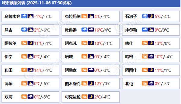 後天,阿勒泰地區的部分區域有小雪,山區局地中雪。全疆其他地區以晴或多雲天氣為主,風力不大。