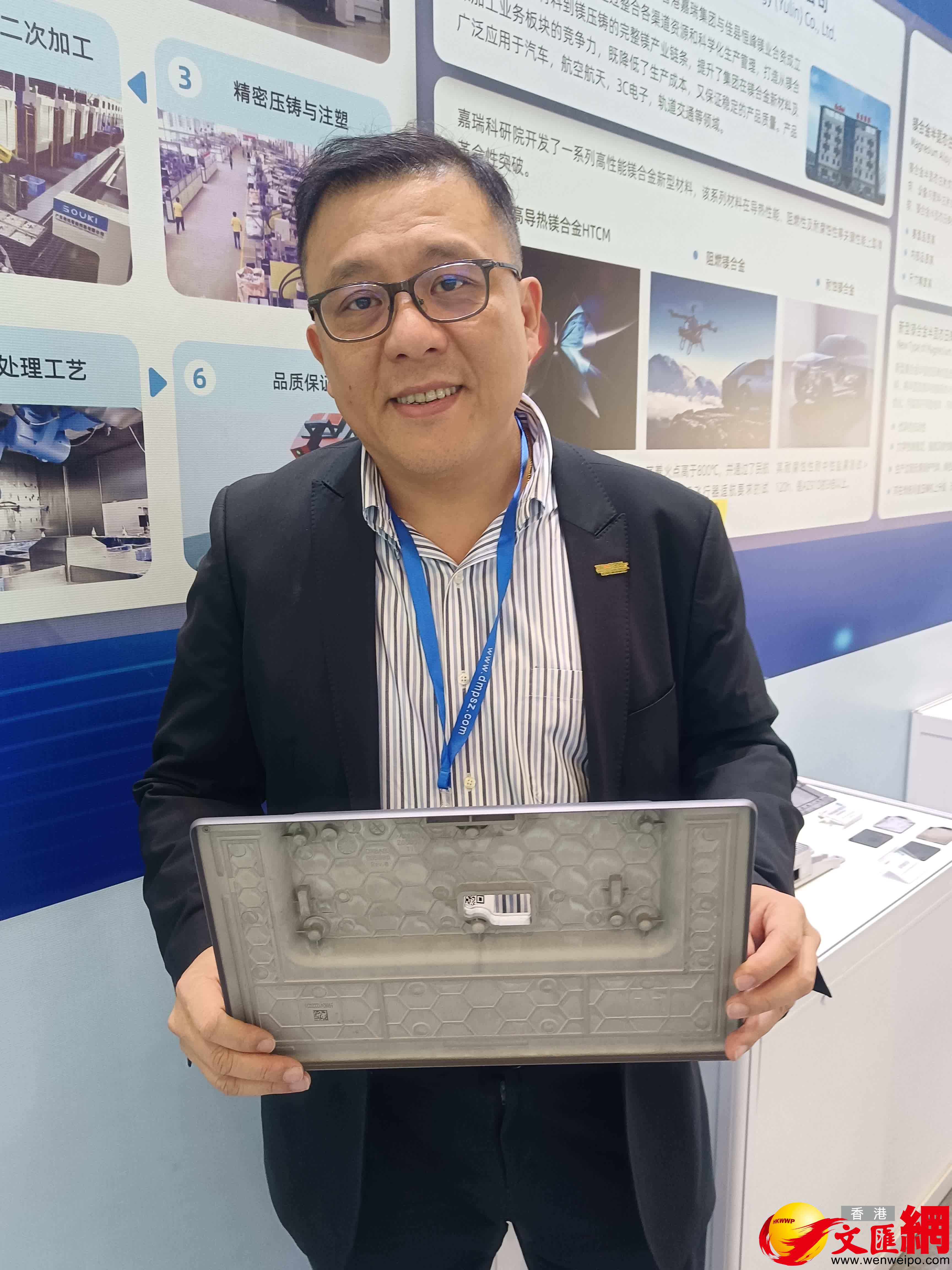 記者採訪獲悉,來自大灣區的鑄造、模具和精密製造等近百家港企紛紛踴躍參展,展示了輕量化鎂合金新能源汽車部件、載人飛行汽車部件和機器人部件等。嘉瑞國際首席技術官及執行董事陳善榮表示,「十五五」規劃國家仍大力提倡發展新能源汽車、低空經濟和具身機器人等,這無疑為公司大力發展輕量化鎂合金帶來良好的機遇,公司在內地僅新能源汽車顯示屏外殼部件一年就銷售數十萬件。