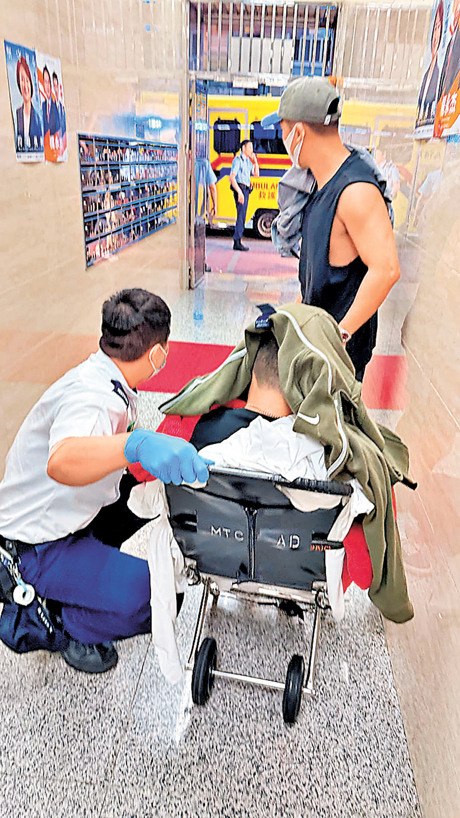 警方衝鋒隊及反恐特勤隊人員到達現場,發現3名傷者包括29歲姓連海關督察、42歲姓陳高級關員和36歲姓李關員,救護員於現場為他們處理傷口,連、陳、李的傷勢分別是左膝有約4厘米長刀傷、右前臂有兩個約10厘米長刀傷,以及右前臂、左膝及右腳跟均有約10厘米長刀傷,現場有大量血跡。