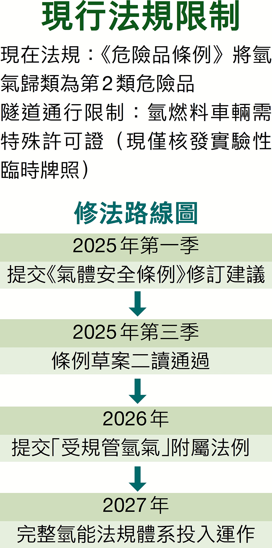 早於去年六月發布《香港氫能發展策略》,為鋪路落實,機電署正主導修訂《氣體安全條例》,並已發布三份技術指引,同步推動氫能法規、標準、認證與示範項目落地,為香港實現2050年碳中和目標奠定堅實基礎。潘國英強調,香港的氫能設施須結合國際標準與本地高密度城市特點,建立長期監測機制。目前元朗凹頭公眾加氫站已投入運作,另有多個專用加氫設施獲批,標誌着香港氫能產業從規劃走向實踐。