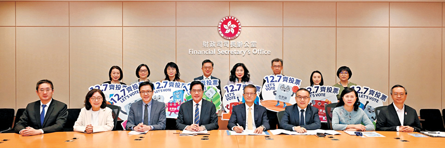 財政司司長陳茂波昨日聯同財政司副司長黃偉綸跟分管的6個政策局局長、署理局長和常任秘書長舉行工作會議,積極部署加強選舉宣傳活動,以發揮工作的最大效應,鼓勵更多相關業界人士和市民踴躍投票。