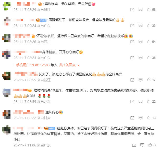十五運會跳水比賽女子雙人10米跳台決賽昨晚(6日)在廣東奧體中心跳水館舉行,帶傷出戰的全紅嬋和隊友王偉瑩未能發揮出最佳狀態,最終僅列第五名。女團奪冠後,全紅嬋用「我真棒」來評價自己的表現。雖然在收官戰中沒能站上領獎台,但全紅嬋坦言:「我還是說我真棒!能堅持完成整場比賽,我覺得很厲害,而且比賽過程讓我挺享受、挺快樂的。」當被問到未來大家是否會繼續在跳水池看到她時,全紅嬋給出了一個開放的回答:「再說吧。」網友也紛紛留言表示,身體健康重要,支持全紅嬋做自己喜歡的事。