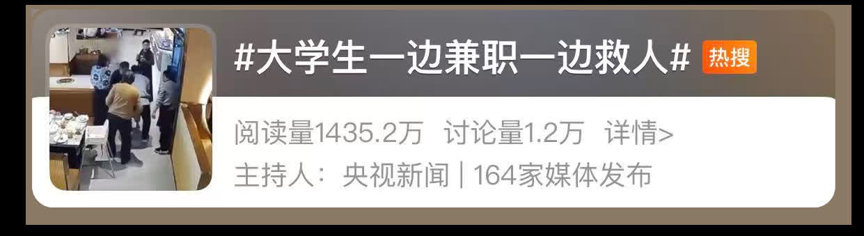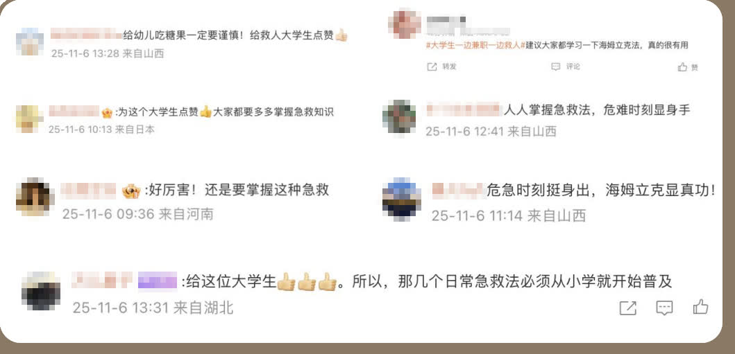 山西太原,一名幼兒就餐時不慎被糖果卡喉。店內的兼職大學生聽到呼喊上前查看,迅速實施海姆立克急救法,經過半分鐘的緊張施救,幼兒吐出糖果。