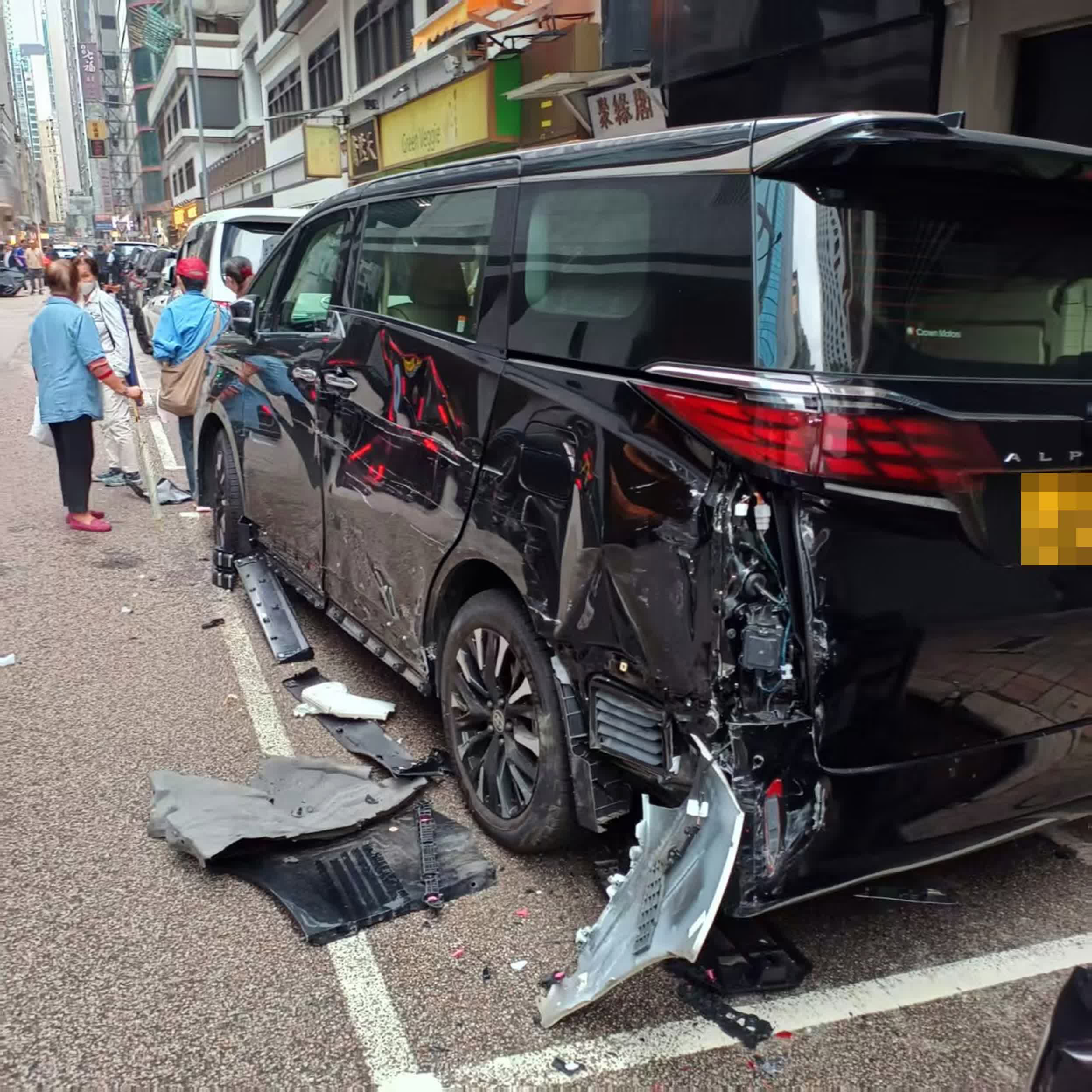 據一名姓吳男車主表示,當時他駕車在路邊等咪錶位,看見肇事白色私家車先撞中路邊一輛七人車,再撞到其座駕致右邊倒後鏡飛脫。事後則見肇事司機「口都流緊血喇,爆晒」,又形容「嗰堂軚扭多少少我就中晒㗎喇......」。