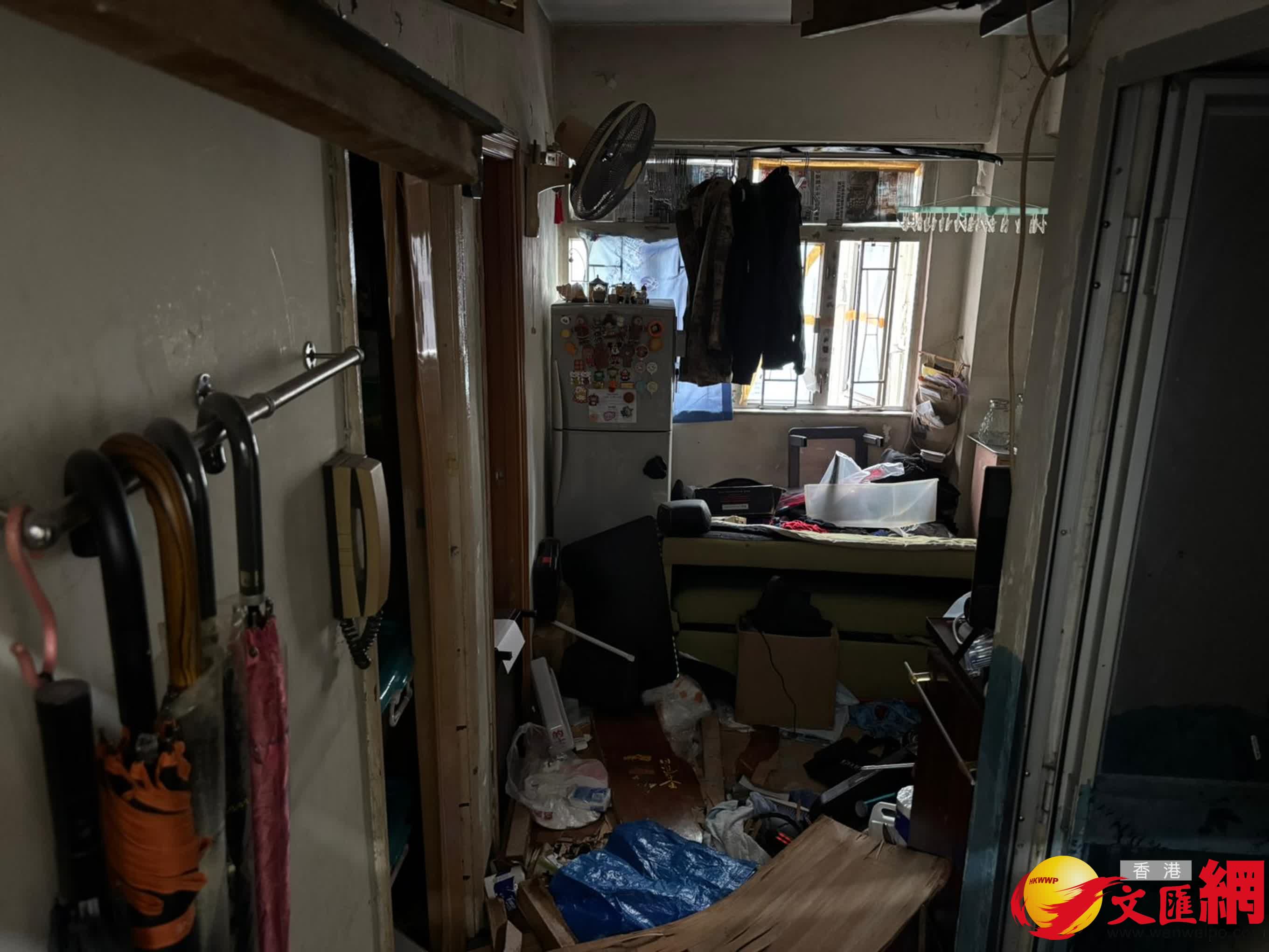 涉案單位今日早上已解封,但鐵閘被用鐵鏈鎖上,木門嚴重毀爛,望入屋內可見放滿雜物,枱凳翻倒,膠櫃夾雜毀爛的大門木板和木條十分凌亂,屋內窗邊亦見掛有衣物,部分玻璃窗貼有報紙。另在該樓層的電梯大堂走廊仍遺有相信是受傷人員的血跡。