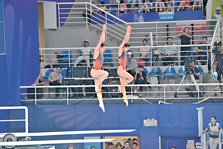 香港文匯報訊(記者 敖敏輝 廣州報道)十五運會跳水比賽昨日(7日)迎來第六個比賽日,在女子雙人3米板決賽中,廣東隊由奧運冠軍陳藝文和世錦賽冠軍林珊強強聯手,她們延續了此前團體賽和預賽中的強勢表現,以333.12分奪得冠軍,這也是廣東隊在本屆全運會上奪得的第五枚金牌。