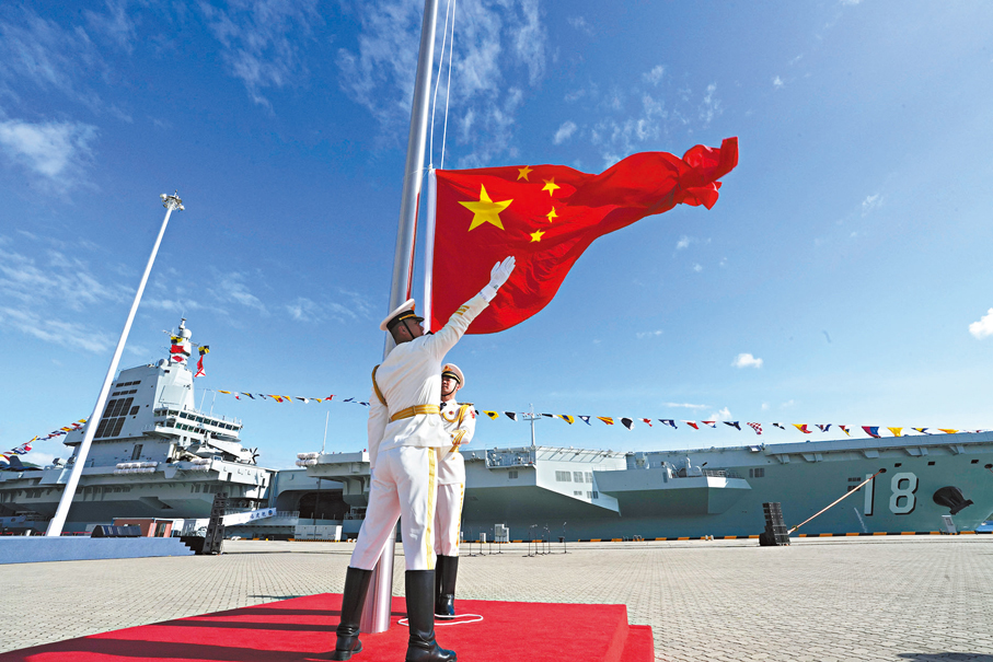11月的三亞,海闊天高,碧波浩瀚。軍港內,福建艦踏海而立、滿旗高懸,山東艦伏波相伴,來自海軍部隊和航母建設單位的代表2,000餘人在碼頭整齊列隊,氣氛隆重熱烈。
