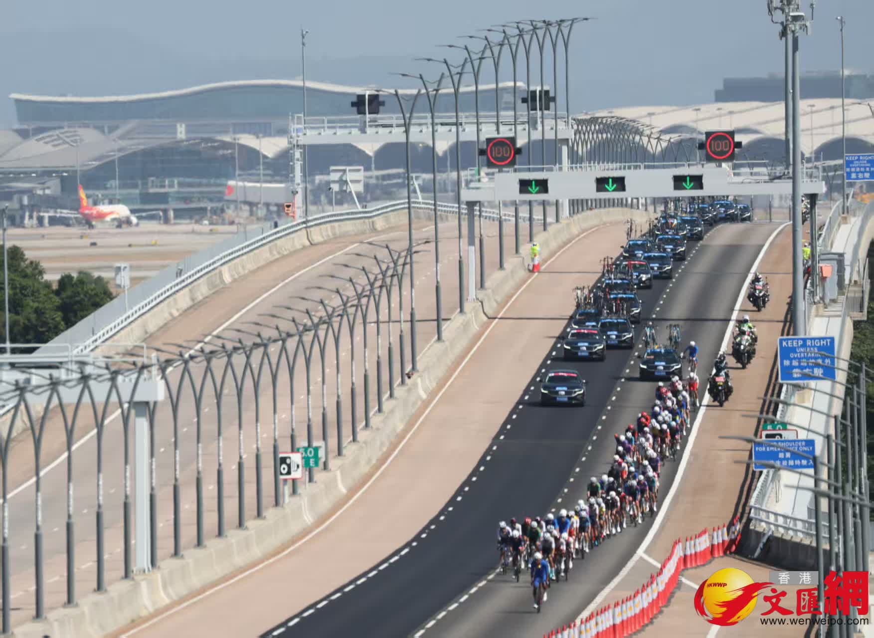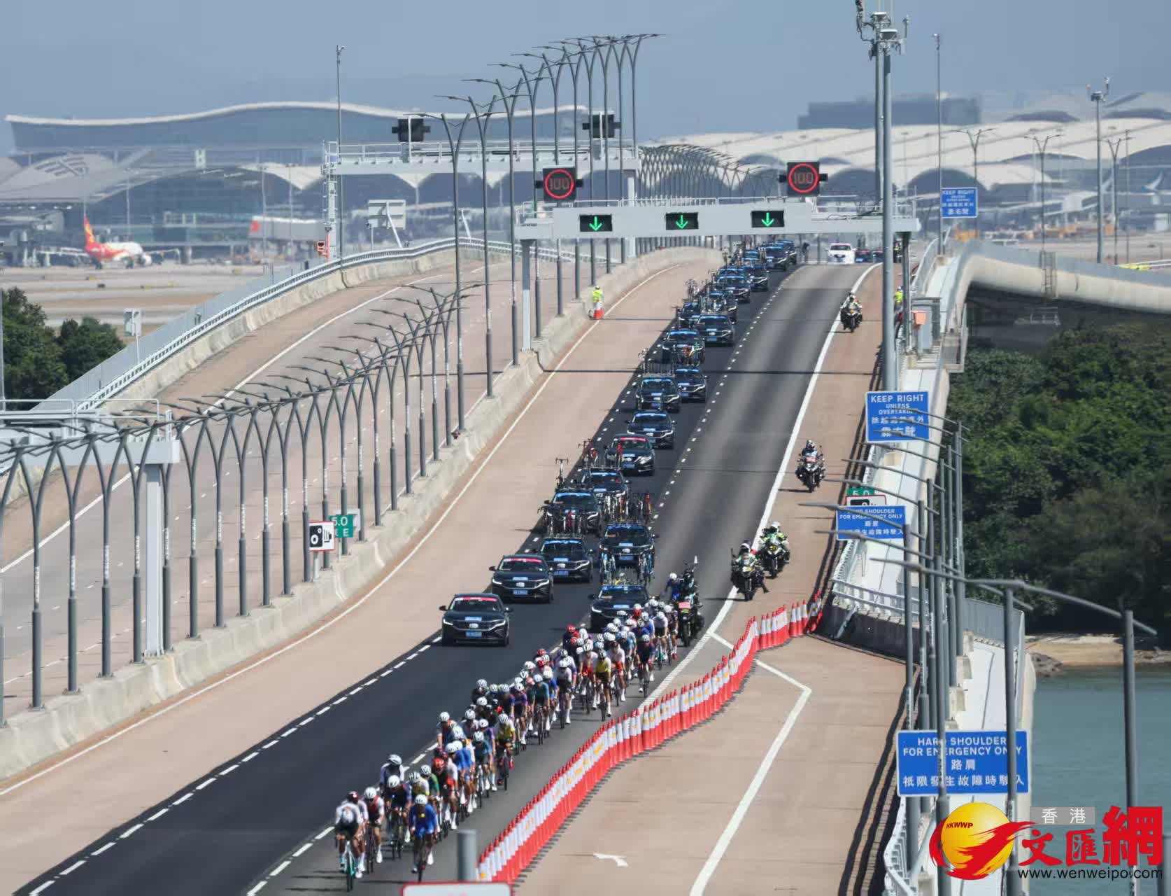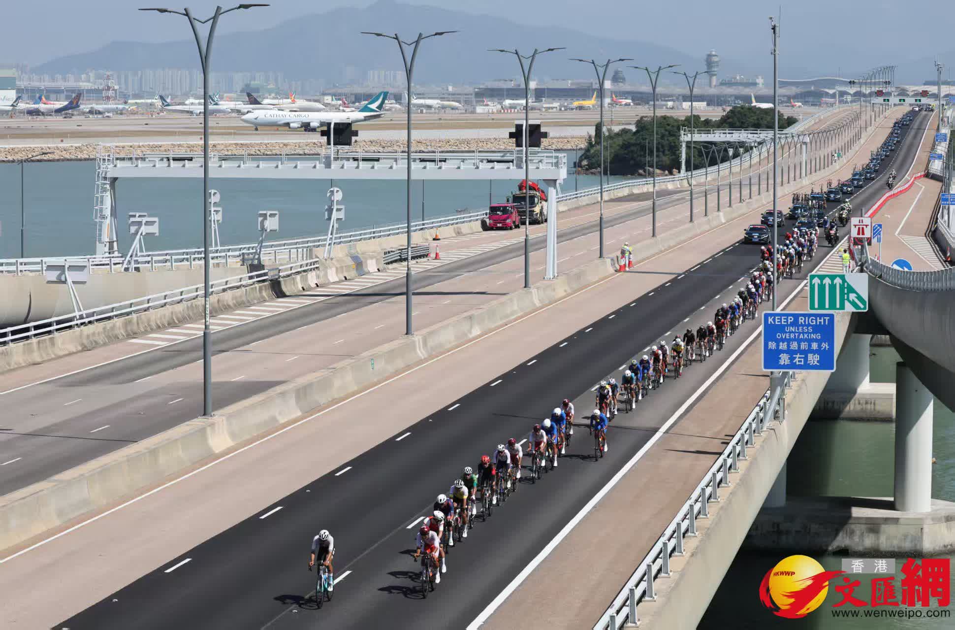 今天(8日),十五運會公路單車男子個人賽決賽在港珠澳大橋展開角逐。圖為男子個人賽香港段現場情況。香港文匯報記者曾興偉 攝