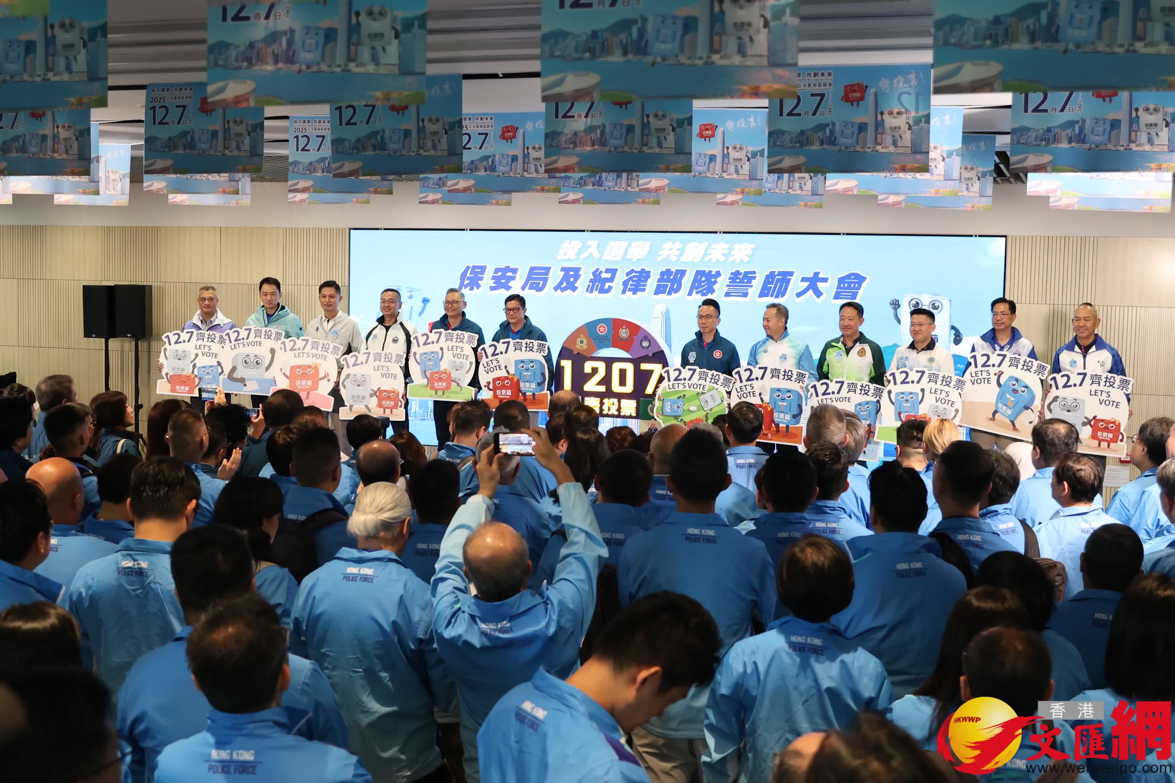 保安局今日(8日)舉行「投入選舉 共創未來」保安局及紀律部隊誓師大會,動員轄下部隊、相關組織和合作夥伴全力支持2025年立法會換屆選舉,合力推廣選舉信息,推動成員或相關員工,以致社會各界,履行公民責任,踴躍投票。