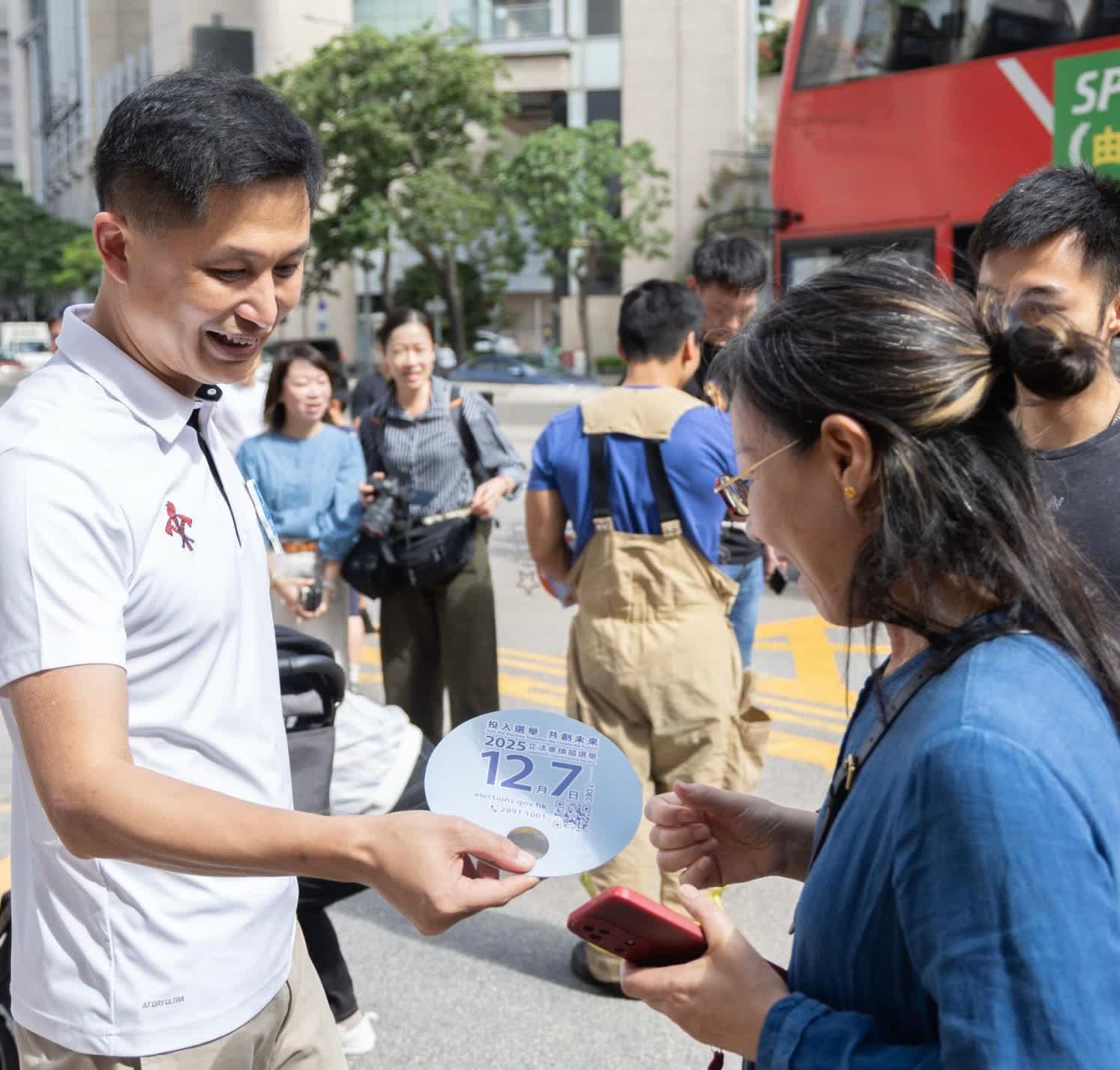 隨後,他們聯同消防處2026年慈善月曆模特兒走進社區派發宣傳單張,呼籲市民運用手中選票,為香港的未來選擇有能之士!