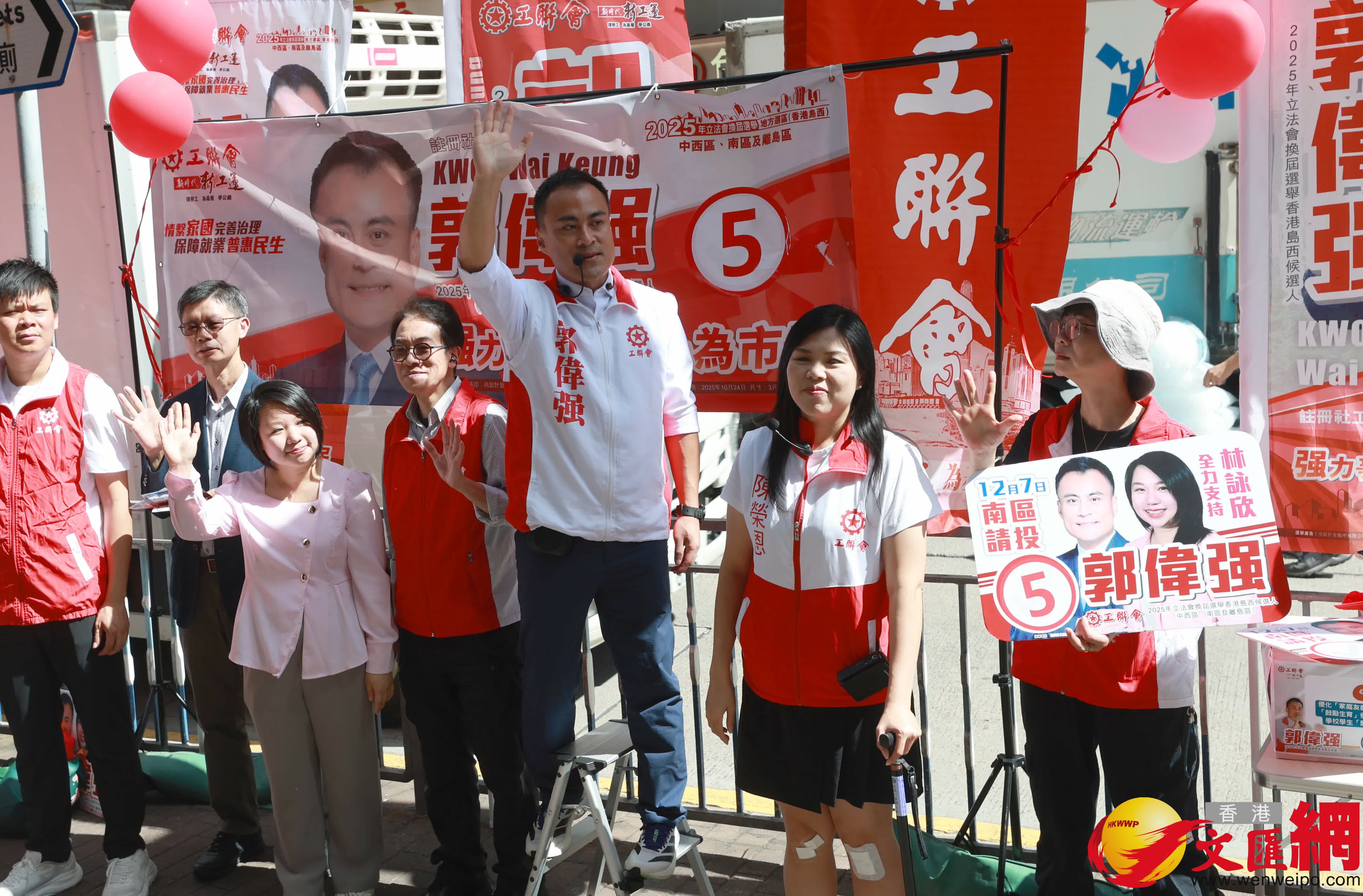 香港文匯報訊(記者 黃子龍)今日是2025年立法會換屆選舉提名結束後的首個周末,各區參選人紛紛落區宣傳自己的政綱和理念,期望讓更多市民認識自己,並號召所有市民在12月7日踴躍投票。其中香港島西選區的5位參選人,今日齊聚香港仔成都道,各自高呼選舉口號,聲勢浩大,全力拚政綱、拚能力、拚投入,讓街坊市民可一次性認識所有人,同時做出對比,在選舉日中投下自己神聖的一票。