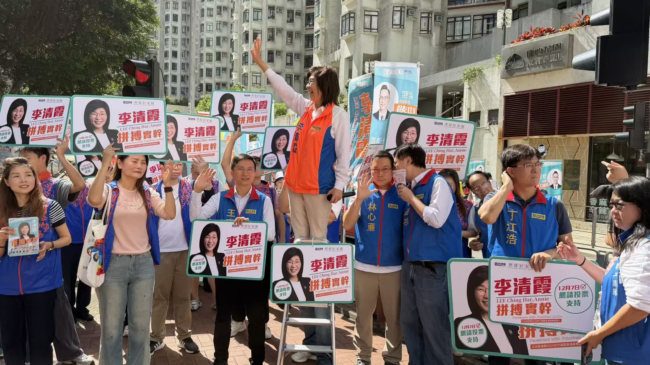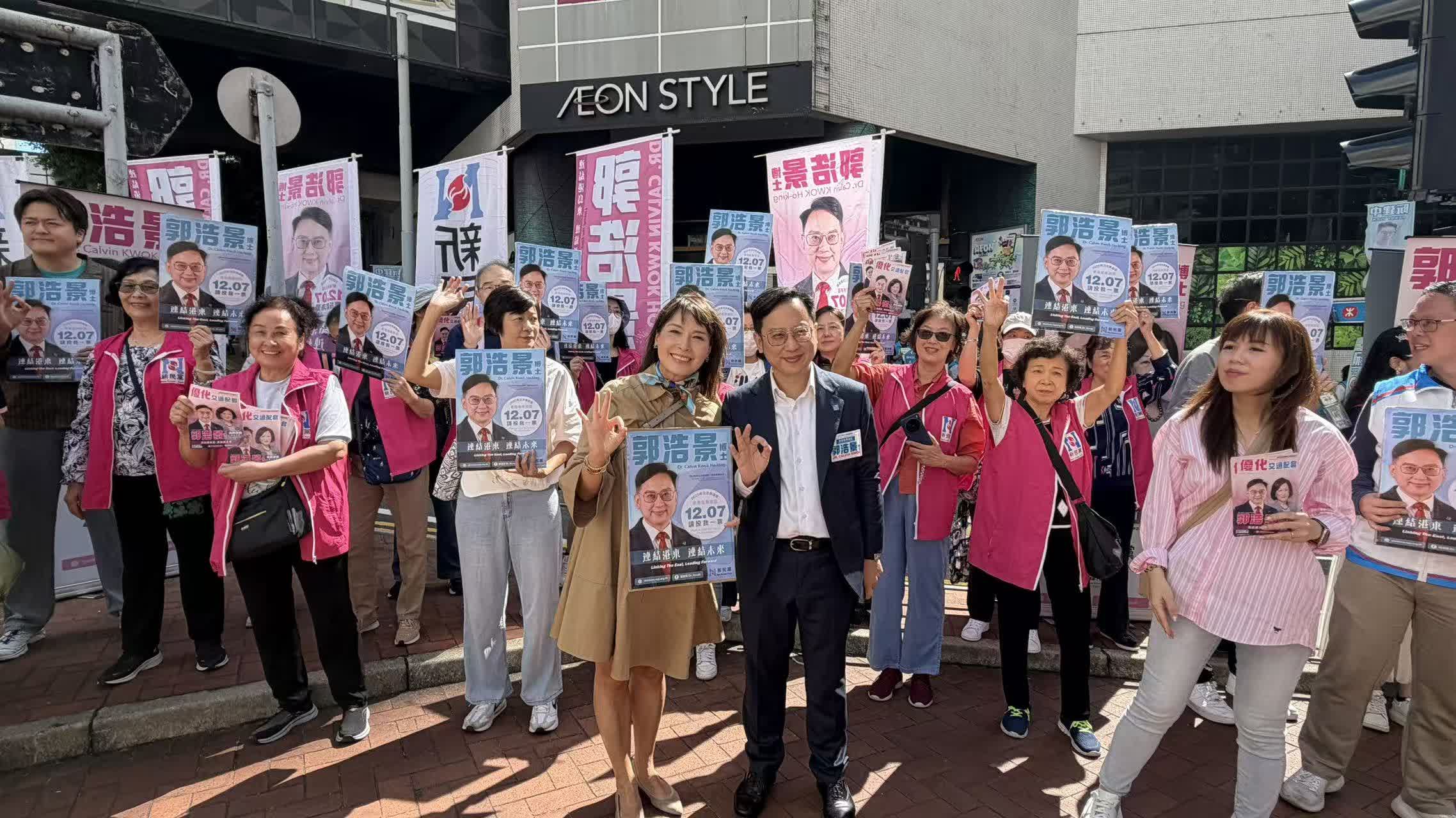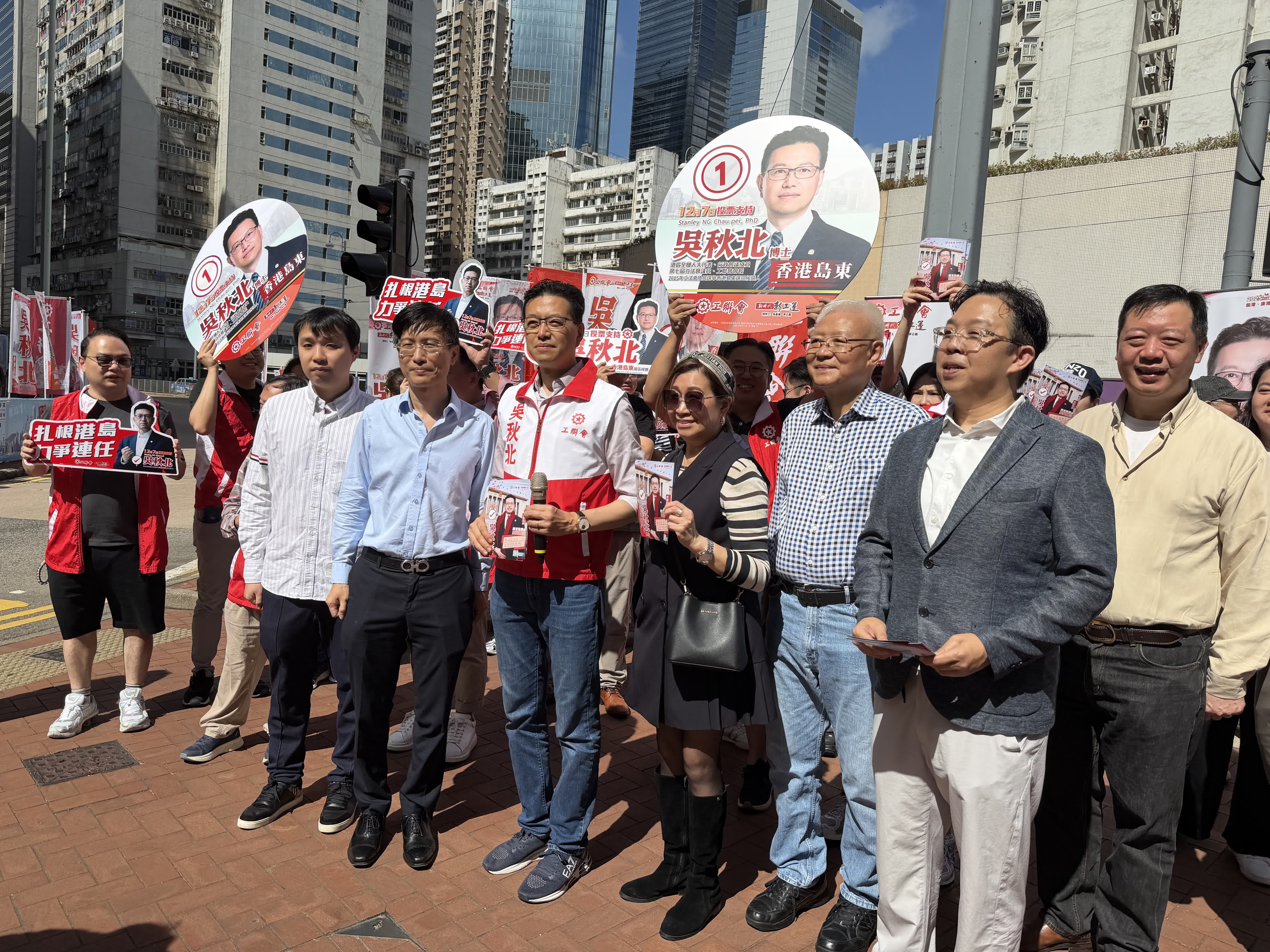 隨着新一屆立法會選舉提名期結束,各參選人正密鑼緊鼓地開展宣傳活動,多個地方選區競爭激烈。其中,港島東地方選區參選人有吳秋北、李清霞、郭浩景、植潔鈴及阮建中,出現「5爭2」的激烈角逐,需要比拚各位參選人的催票、組織和宣傳能力。今日(8日),港島東地方選區5位參選人紛紛在太古康山道擺街站造勢,聲勢浩大。他們聯同義工團隊,向市民展示自己的政綱理念,與街坊交流、闡釋政綱,力爭選民支持。