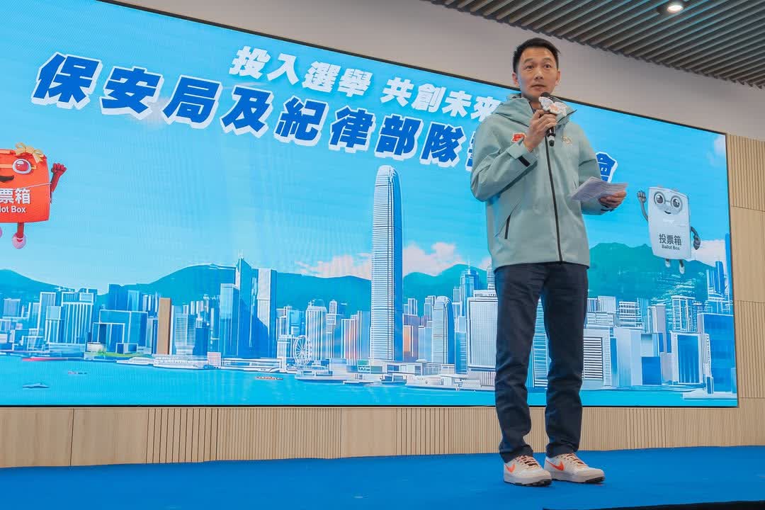 香港文匯報訊(記者 蕭景源)為支持即將到來的立法會選舉,政府飛行服務隊總監廖嘉俊今日(8日)帶領一眾管理層以及工會成員出席由保安局主辦的誓師大會。