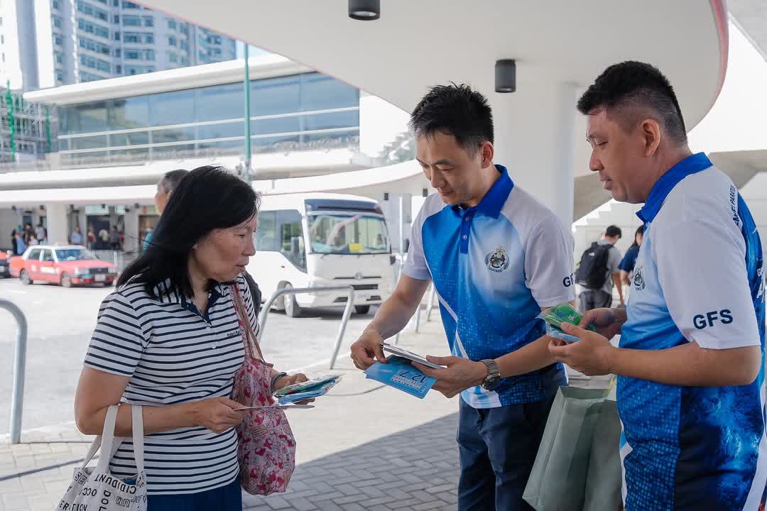 誓師後隨即聯同文職同事走進社區,親手派發選舉傳單,呼籲每一位市民珍惜手中神聖的一票,於12月7日踴躍投票!