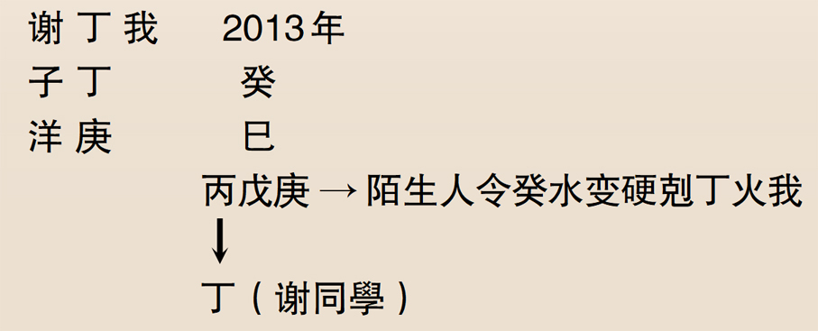 ⑸ 癸水剋丁火,從高處跳下壓中谢同學﹔