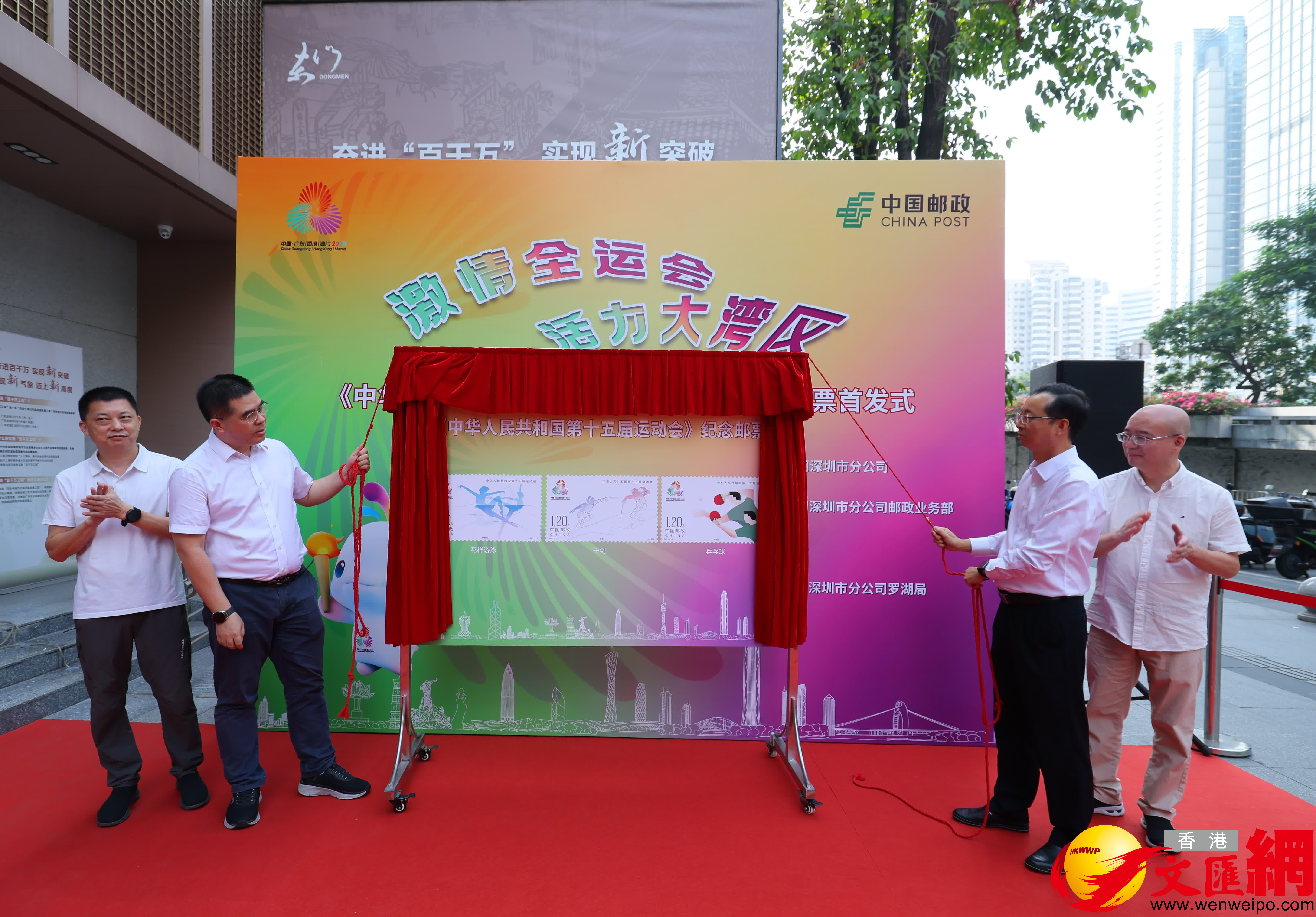 深圳郵政郵票首發式活動現場同步發行首日封、紀念封等主題郵品,並設置「活力全運」主題打卡區,提供7枚十五運會紀念戳及34枚運動項目紀念戳,供市民免費加蓋。