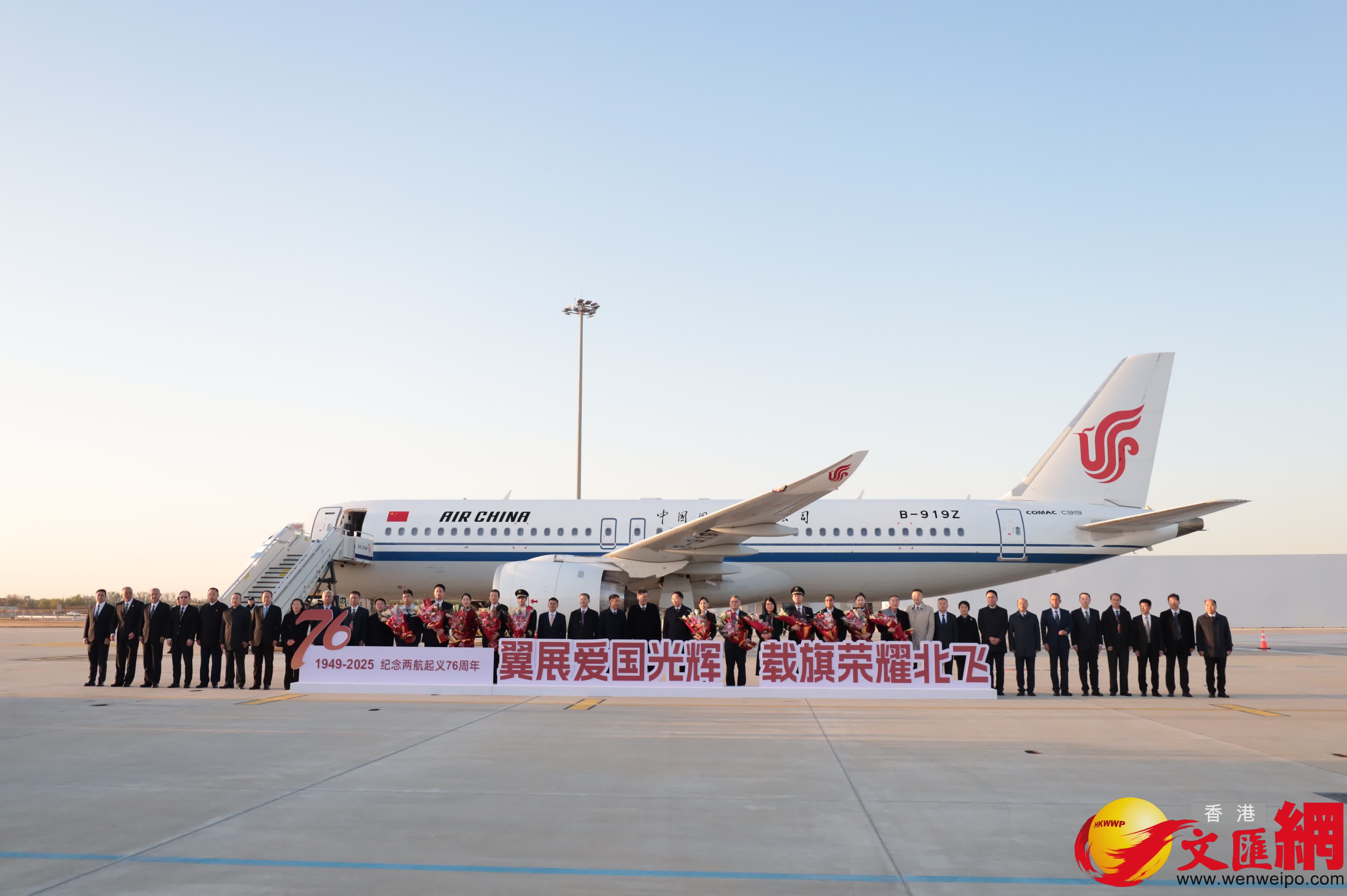 9日下午13時19分,搭載着百餘位旅客的國航CA104航班從香港國際機場準時起飛,機翼劃破晴空,朝着天津方向啟航。這架噴塗着「中國國際航空」標識的C919國產大飛機,正沿着76年前「兩航起義」的北飛航線,完成一場跨越時空的歷史對話。「1949年11月9日,正是在這片土地上,原中國航空公司、中央航空公司的2000餘名員工,毅然掙脫反動勢力束縛,駕駛12架飛機衝破封鎖北歸,用勇氣與忠誠開啟了新中國民航的序章……」萬米高空上,機長的深情廣播將旅客帶回那段烽火連天的歲月,讓每一位乘客都成為歷史的見證者與精神的傳承者。