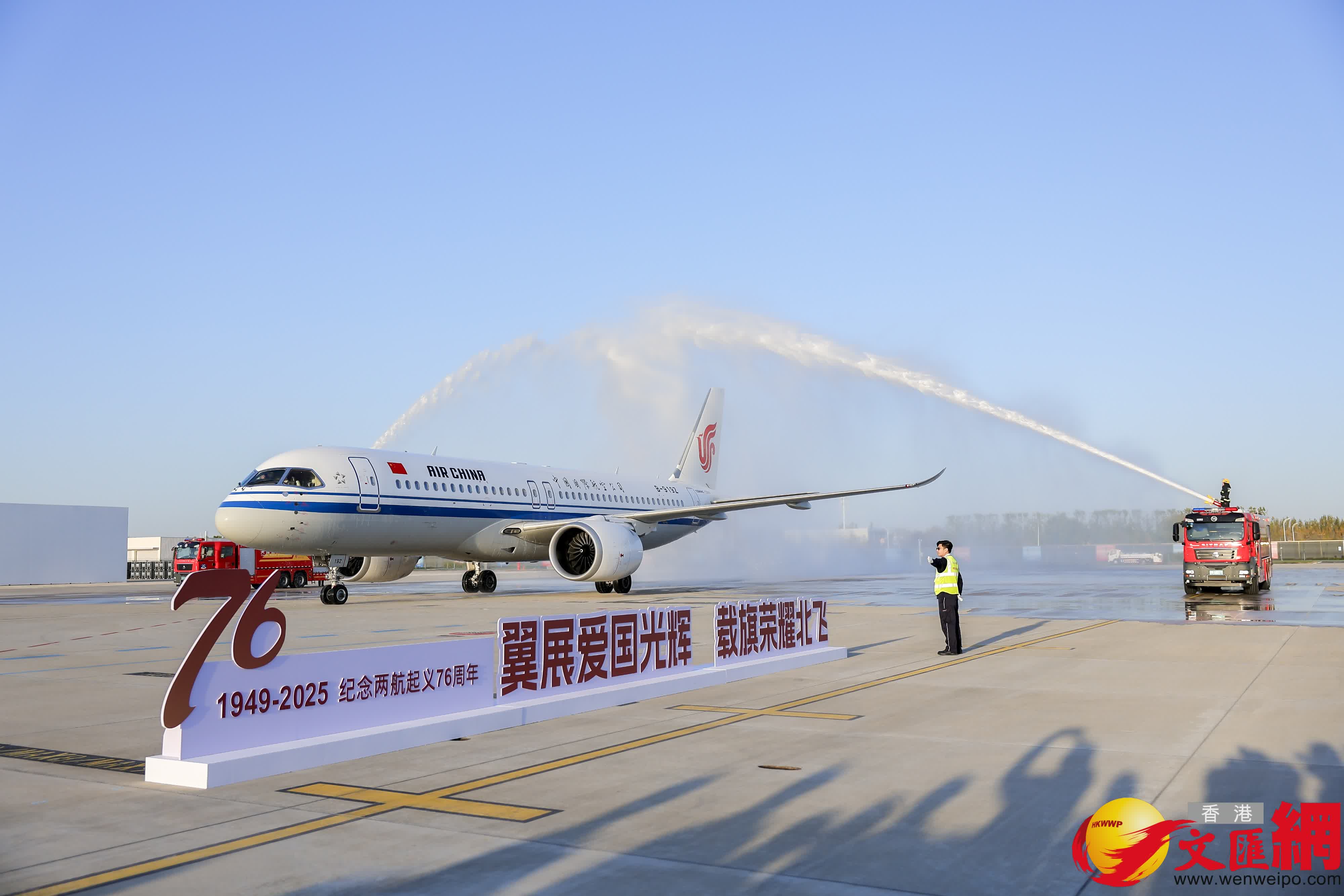 (香港文匯網記者 張聰 丁潔雲 天津報道)11月9日,恰逢「兩航起義」76周年紀念日,中國航空集團有限公司(以下簡稱「中航集團」)以「翼展愛國光輝 載旗榮耀北飛——國航C919重飛『兩航起義』北飛光輝航程」為主題,聯動香港與天津兩地舉辦系列紀念活動。活動創新性地以國航C919國產大飛機重飛歷史航線的主題航班為紐帶,同步開啟天津「兩航起義」展館首展,通過「空地呼應、古今交融」的立體呈現,回溯新中國民航事業的紅色源頭,致敬76年前那段驚天動地的愛國壯舉,禮讚以「兩航」人為代表的民航先驅,更以國產大飛機翱翔藍天的雄姿,印證新時代中國民航從追趕到領跑的跨越式發展。